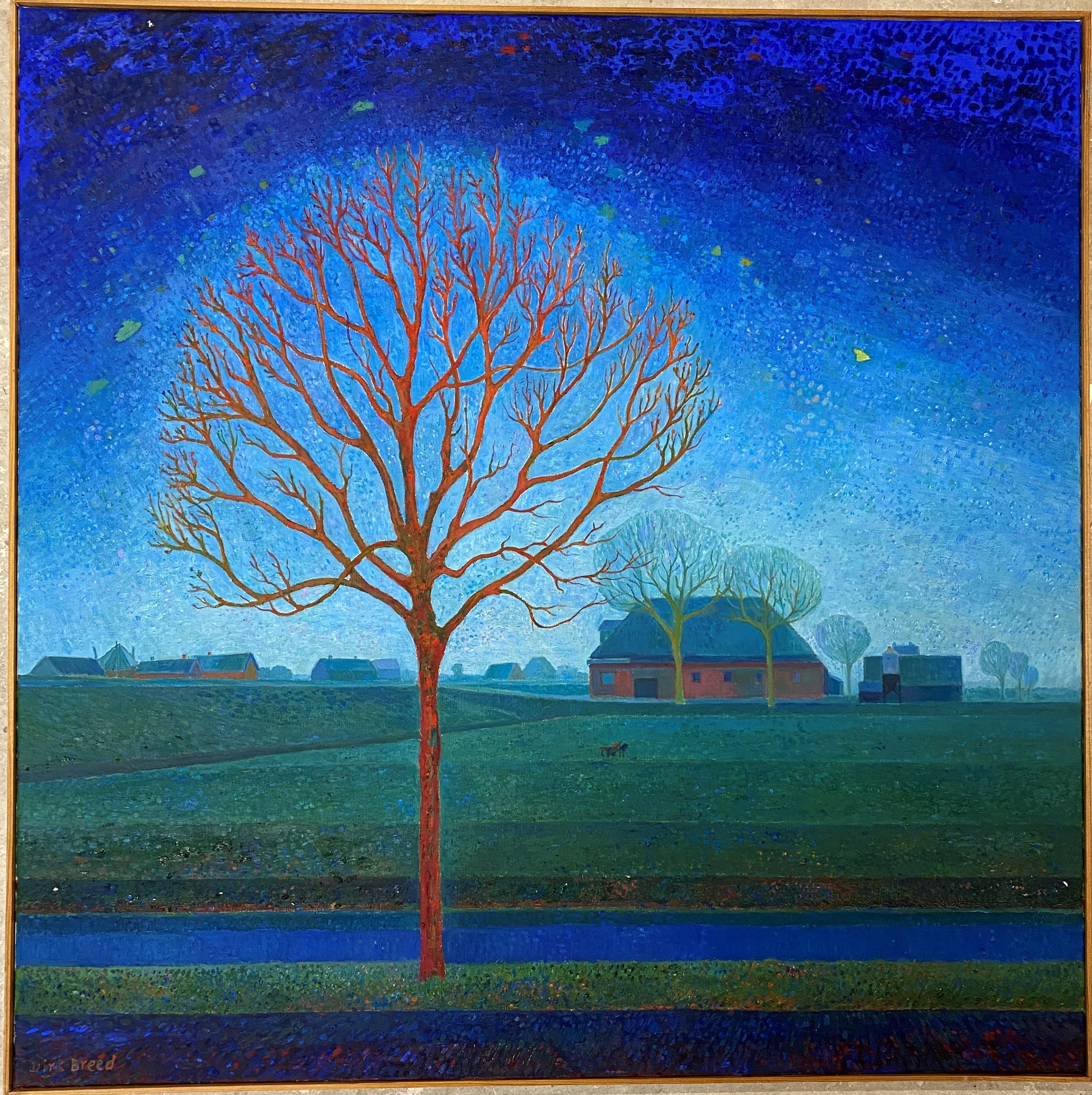Landschap met rode boom