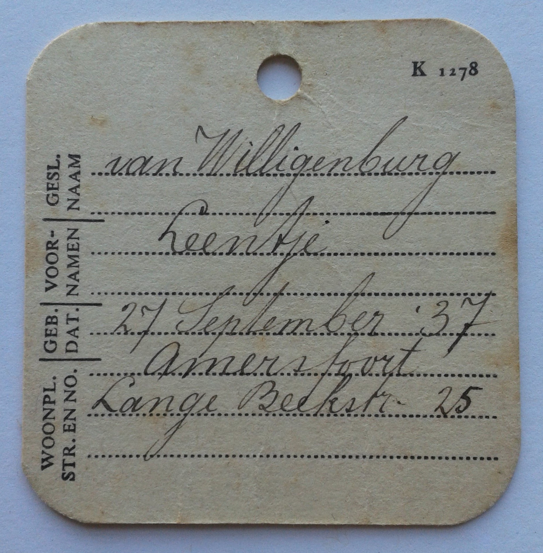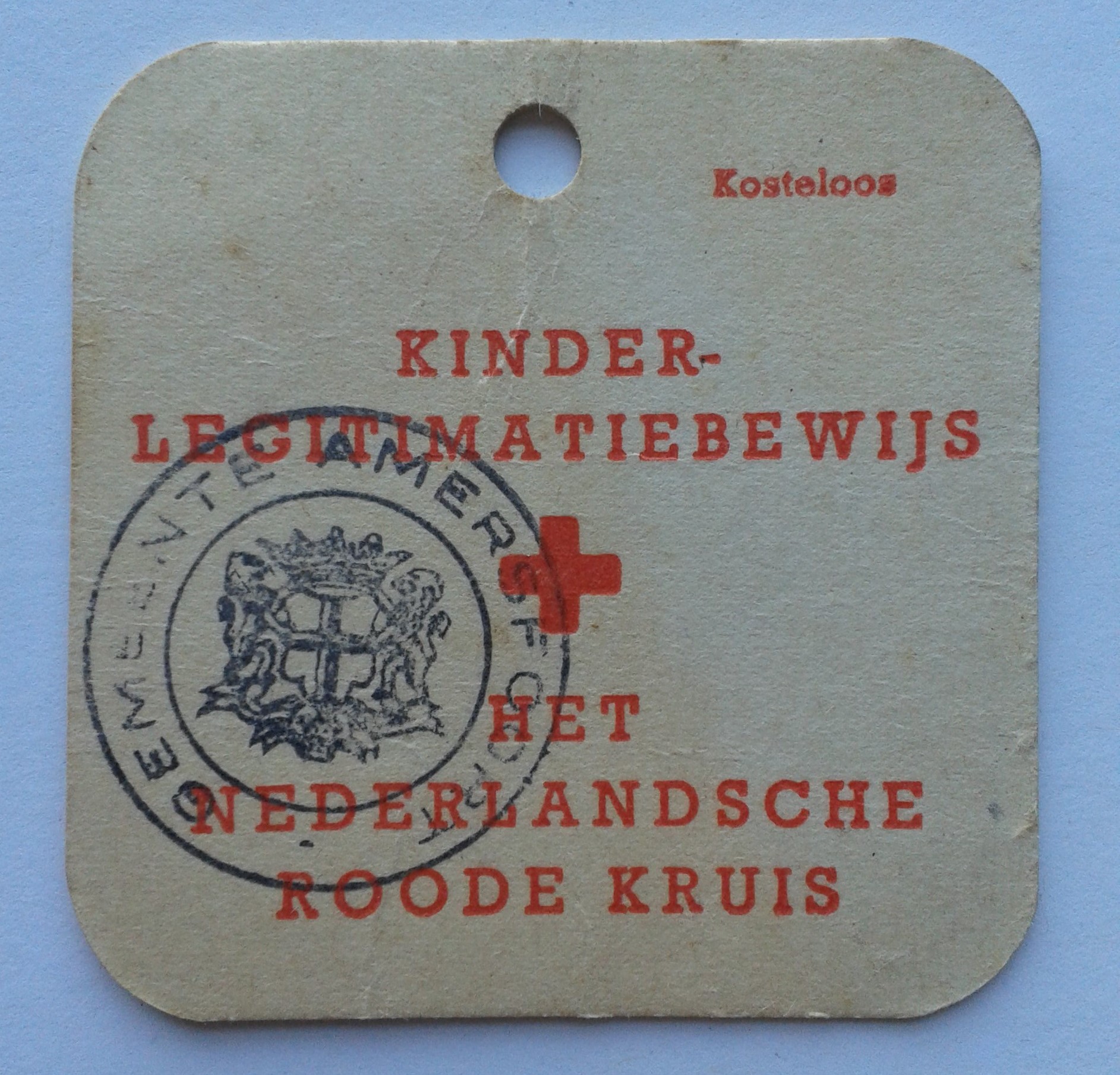 Kinderlegitimatiebewijs. Het Nederlandsche Roode Kruis