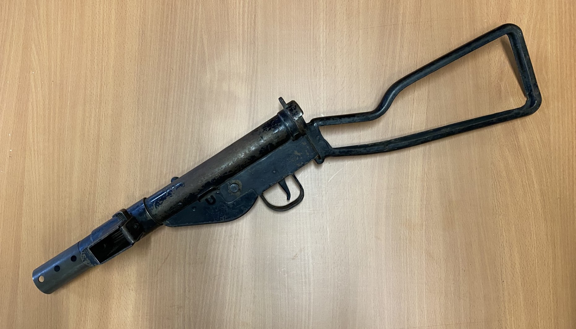Een Stengun pistoolmitrailleur van de kunstenaar Armando