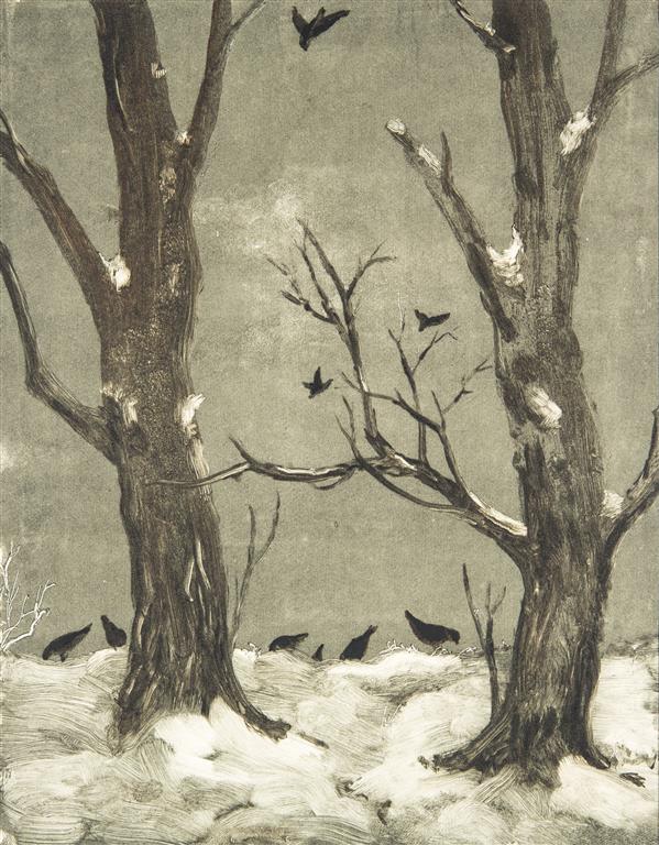 Kraaien in de sneeuw