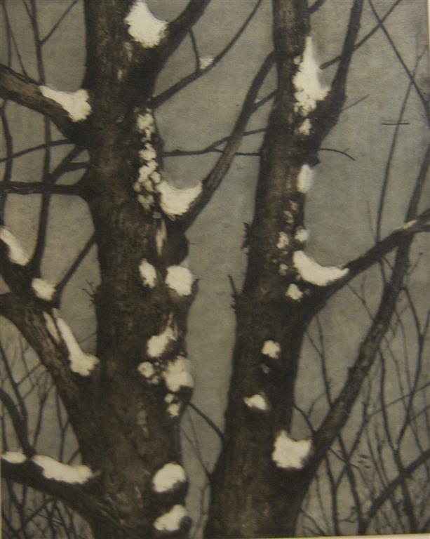 Besneeuwde stammen