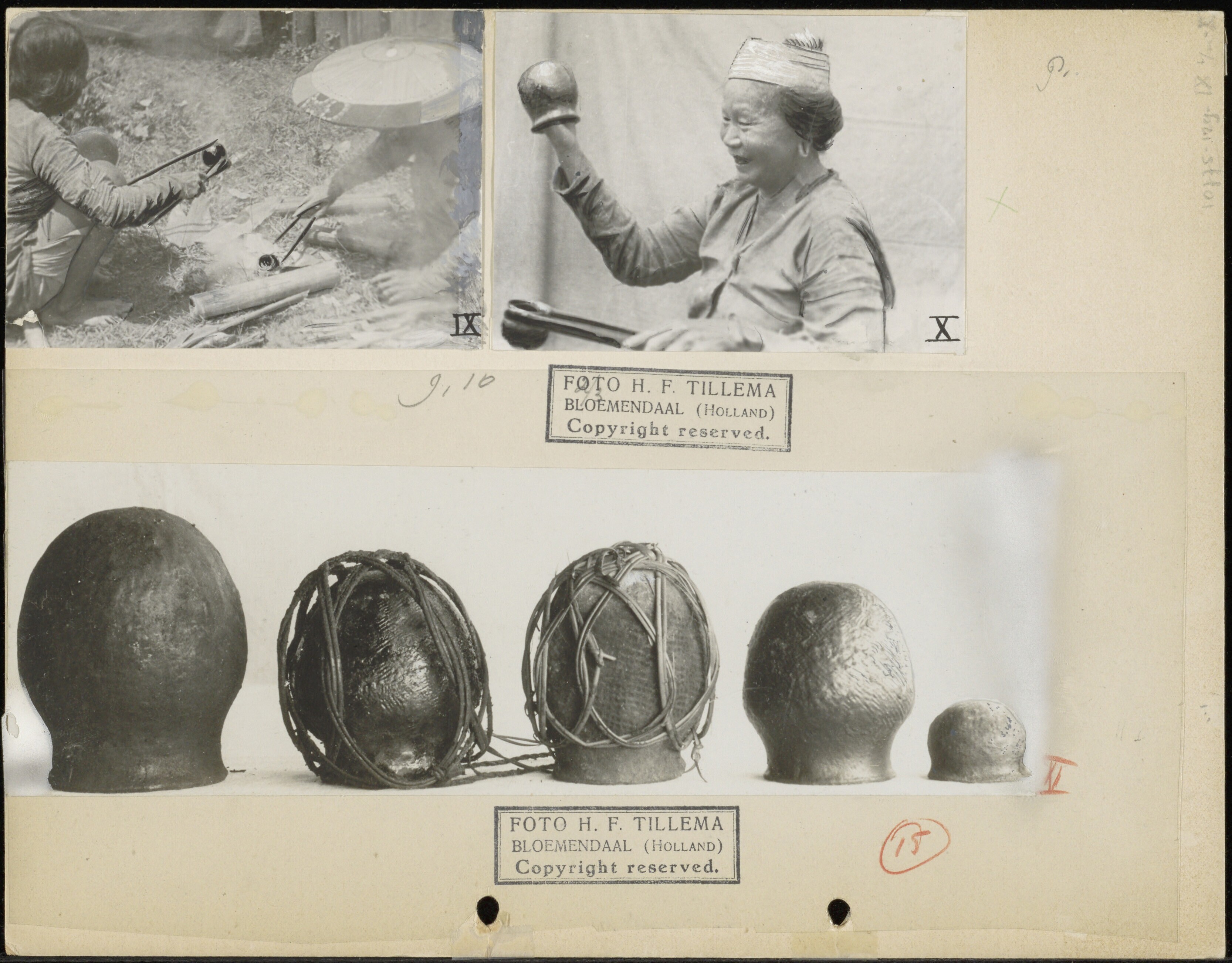 Dayaks bezig met het uit het vuur halen van gebakken aardewerk