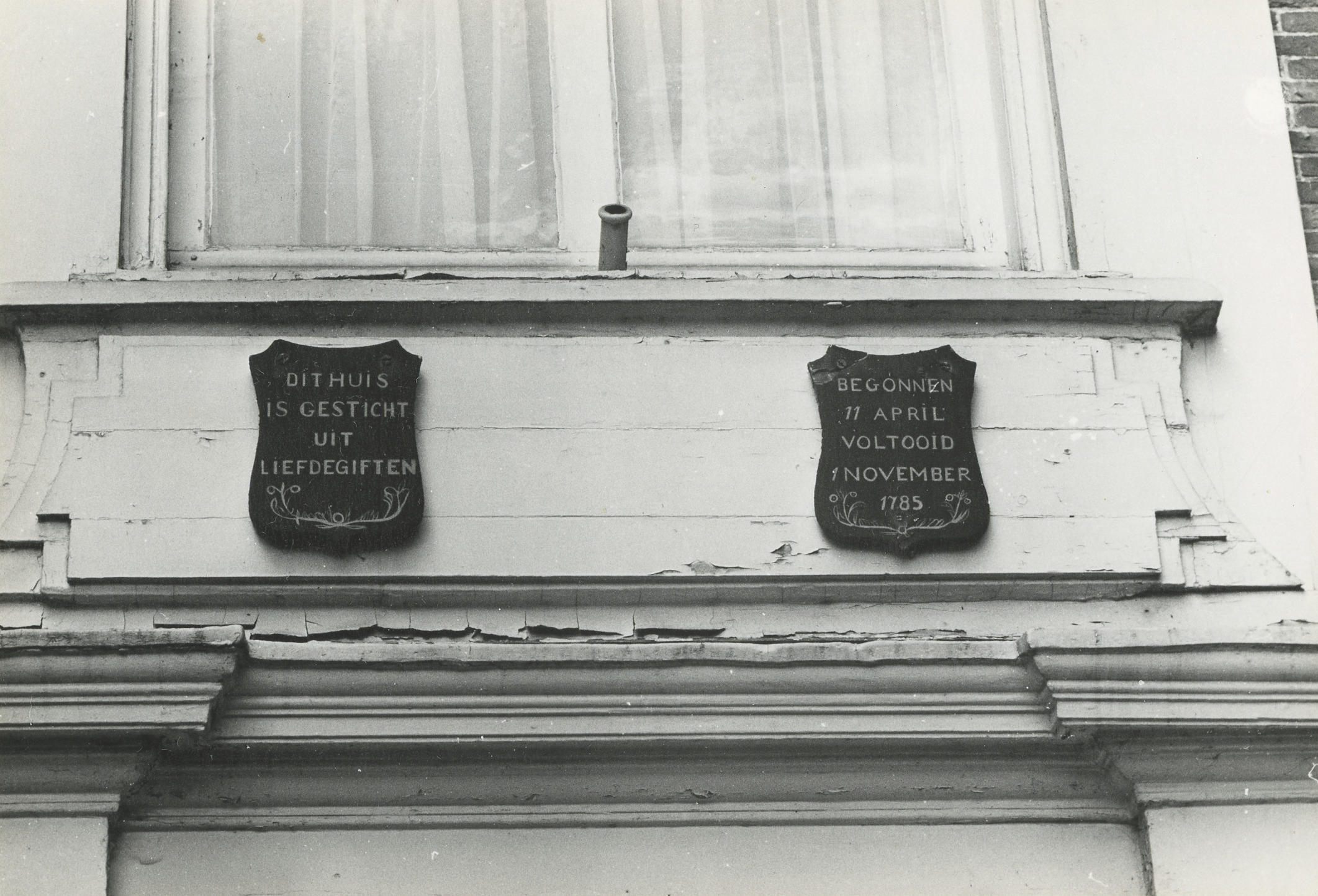 Twee schildjes boven de deur van de pastorie van de Nederlands hervormde kerk in Voorthuizen.