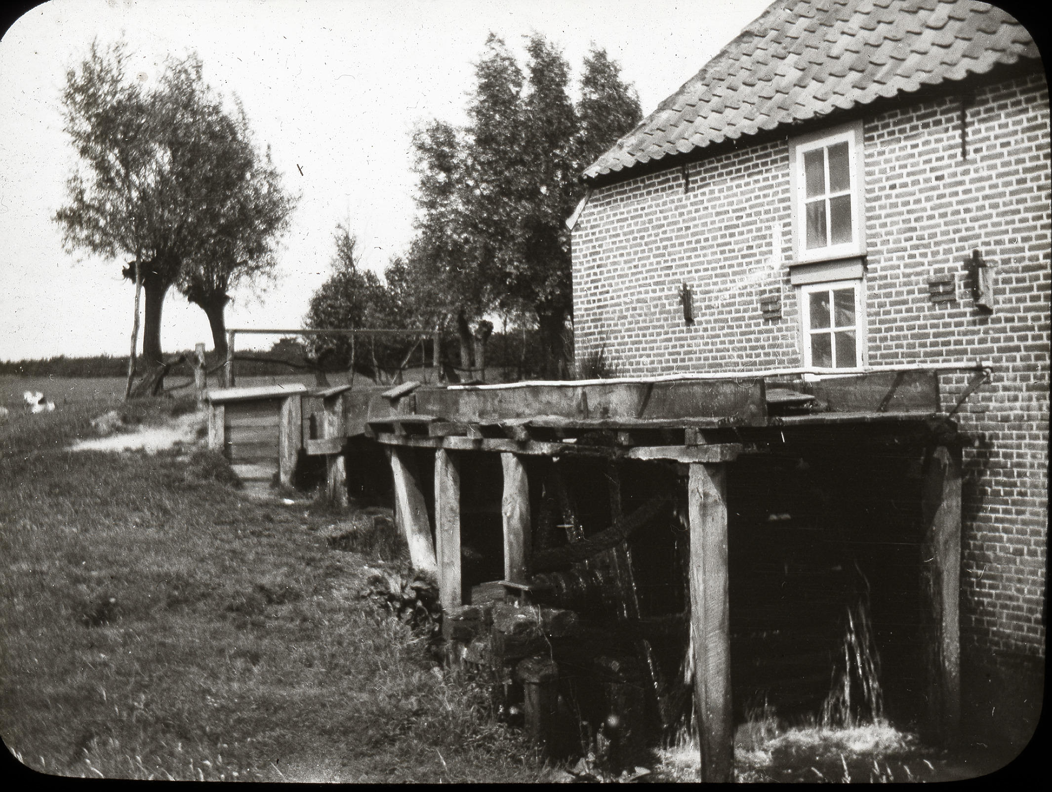 Waterradmolen, vermoedelijk circa 1900 (zwart-wit dia)