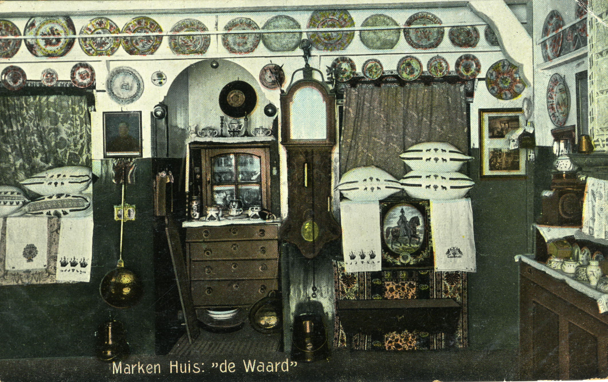 Traditioneel Marker interieur van Cornelis de Waart en Geertje de Waart-Uidam. Het interieur was opengesteld als 'kijkhuisje' en er werden souvenirs verkocht. In de nacht van 8 op 9 februari 1905 brandde het pand af.