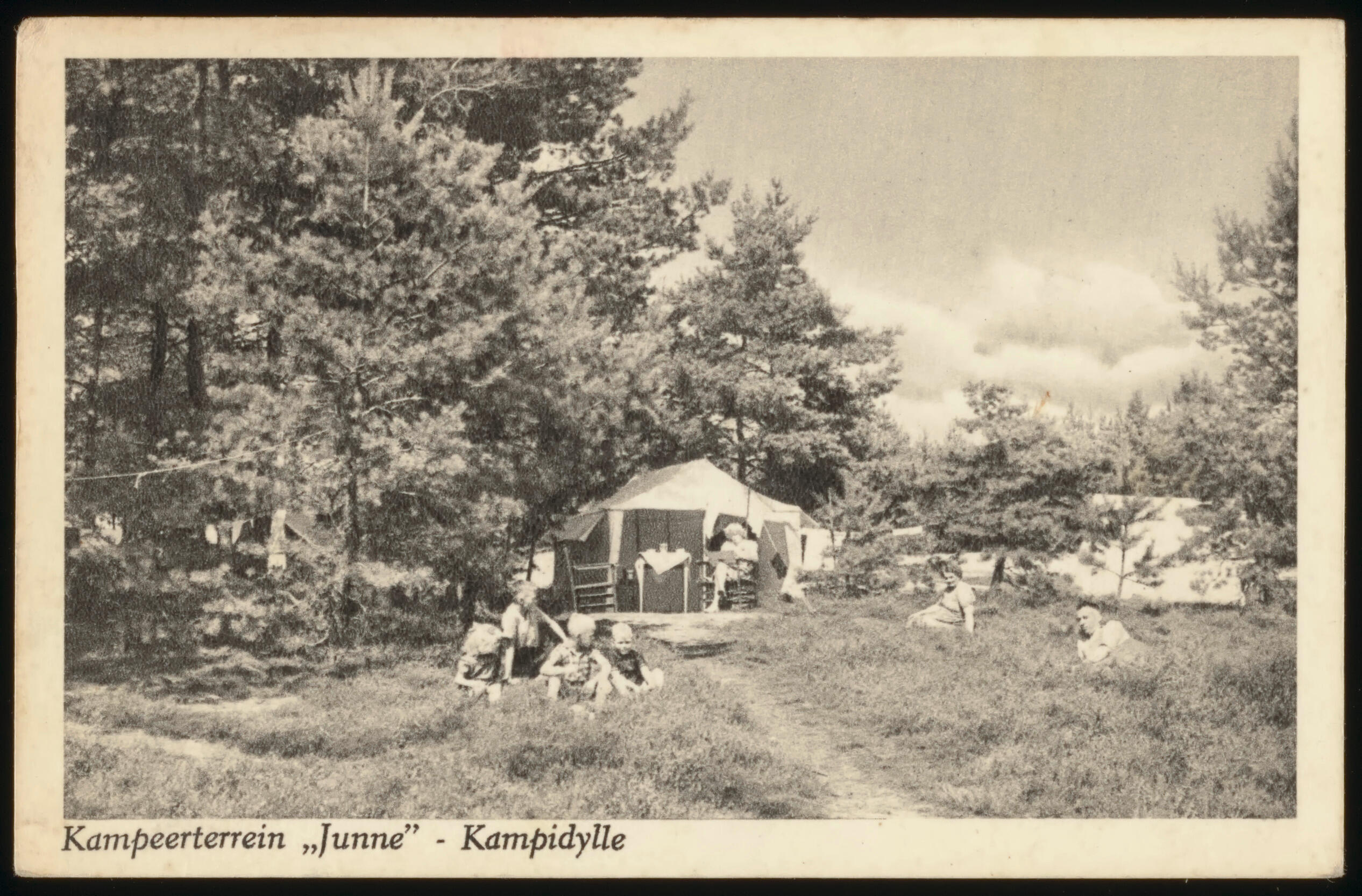 Ansichtkaart van kampeerterrein Junne, circa 1953 (ansichtkaart)