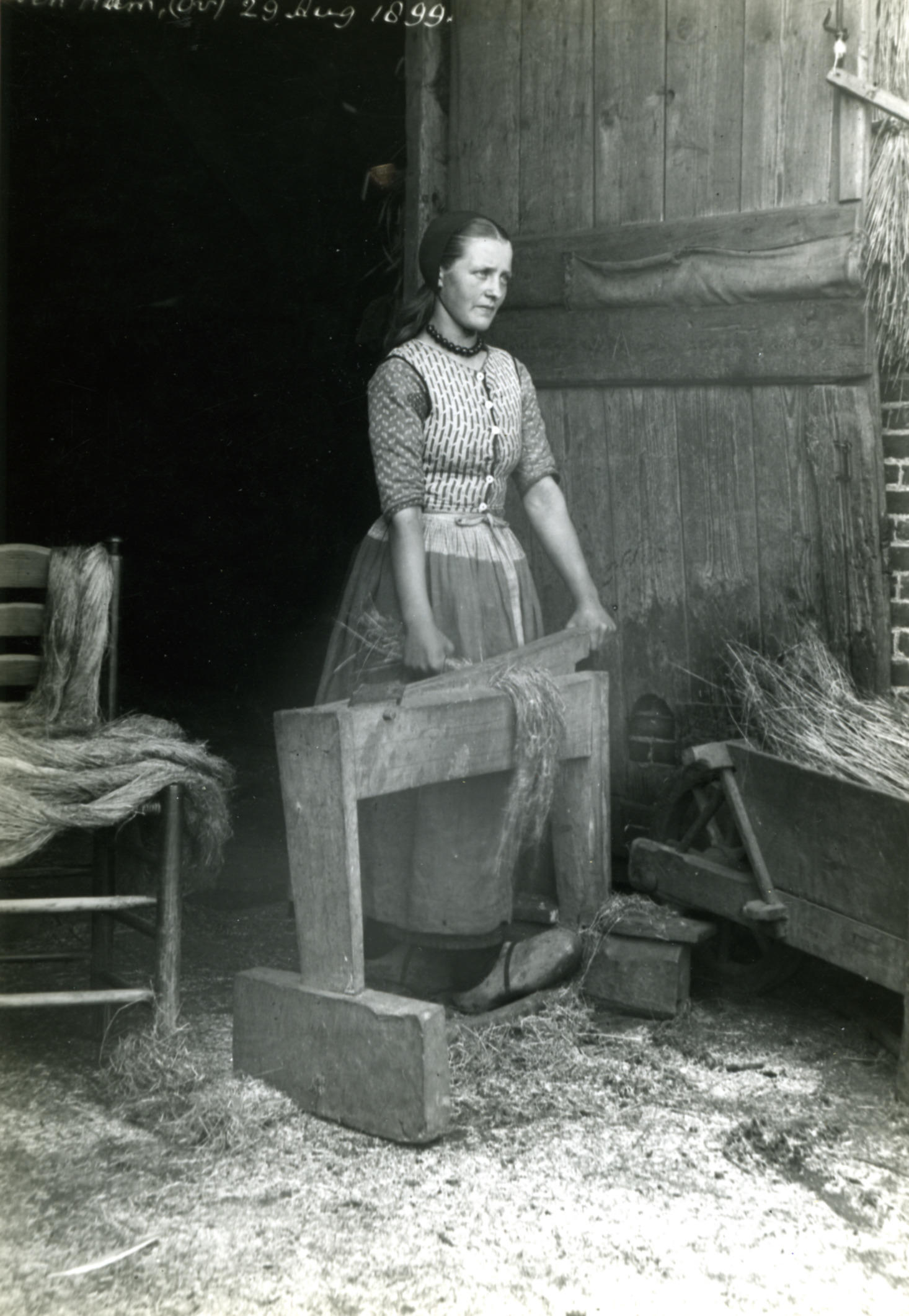 Braken van vlas, Den Ham, 1899 (zwart-wit foto)
