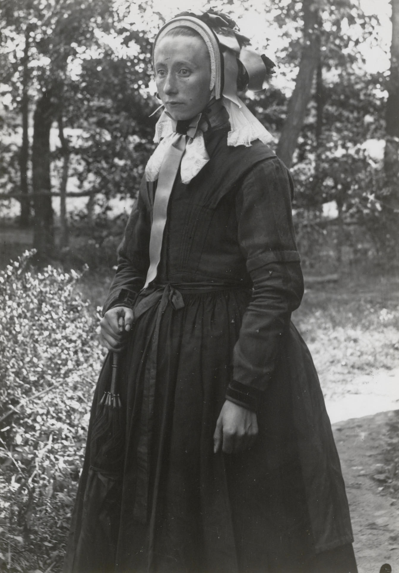 Aaltje Spoelman-van Haarst in streekdracht uit Den Ham, 1899 (zwart-wit foto)