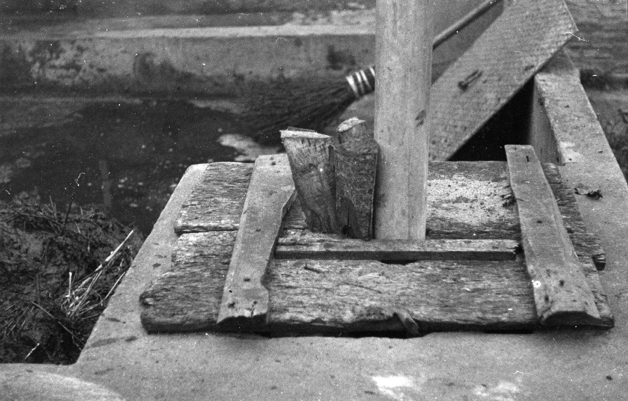 Houten deksel als afsluiting van een gierput in het Overijsselse Het Loo, bij Wierden.