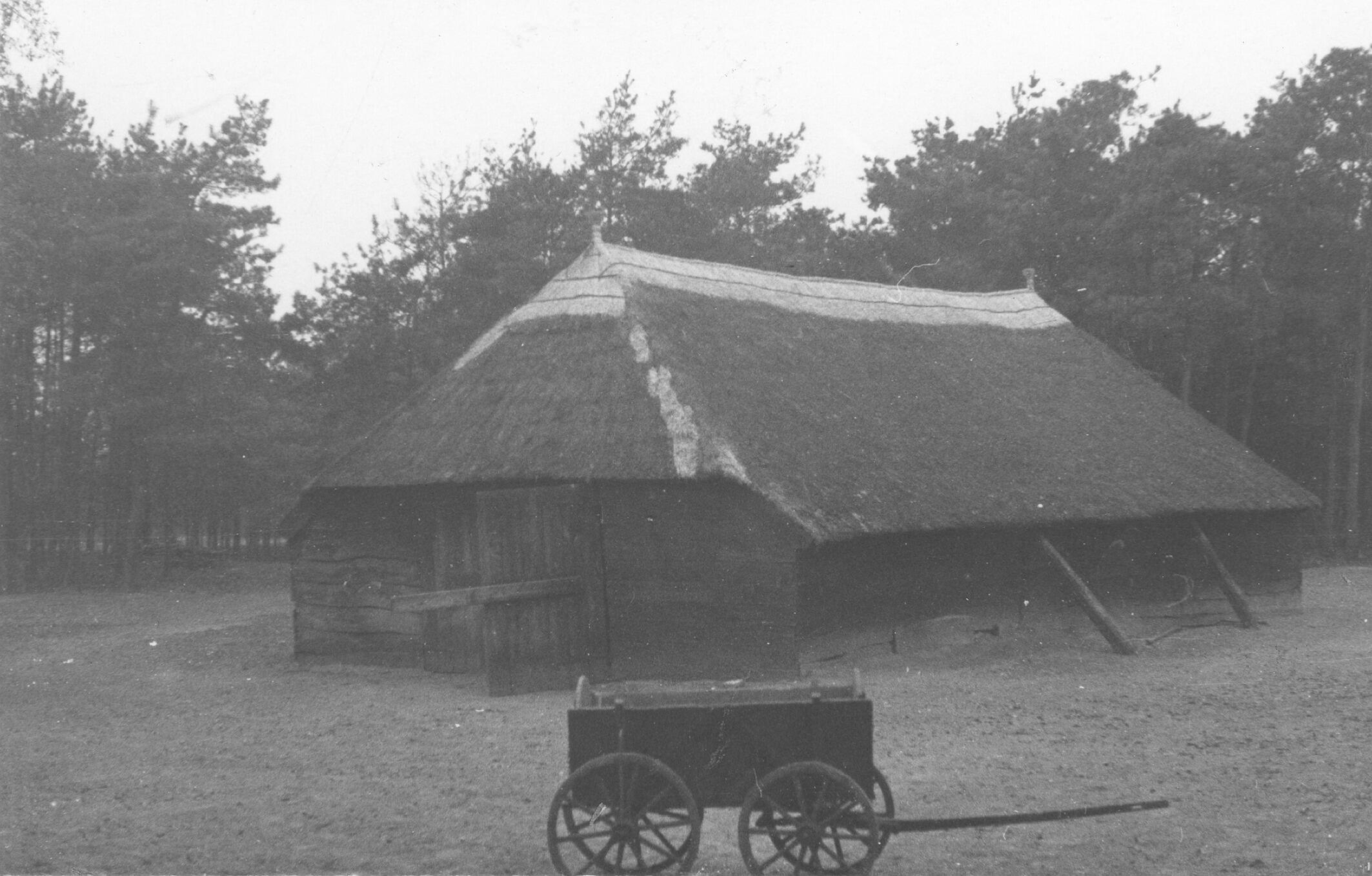 Schaapskooi in het Overijsselse Hoge Hexel, met daarvoor een houten wagen.