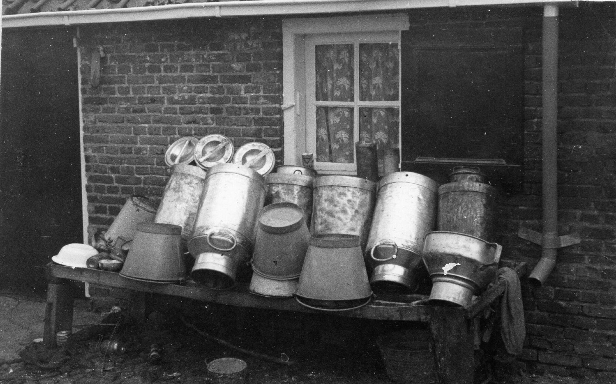 Melkbussenrek, Hoge Hexel, 1937 (zwart-wit foto)
