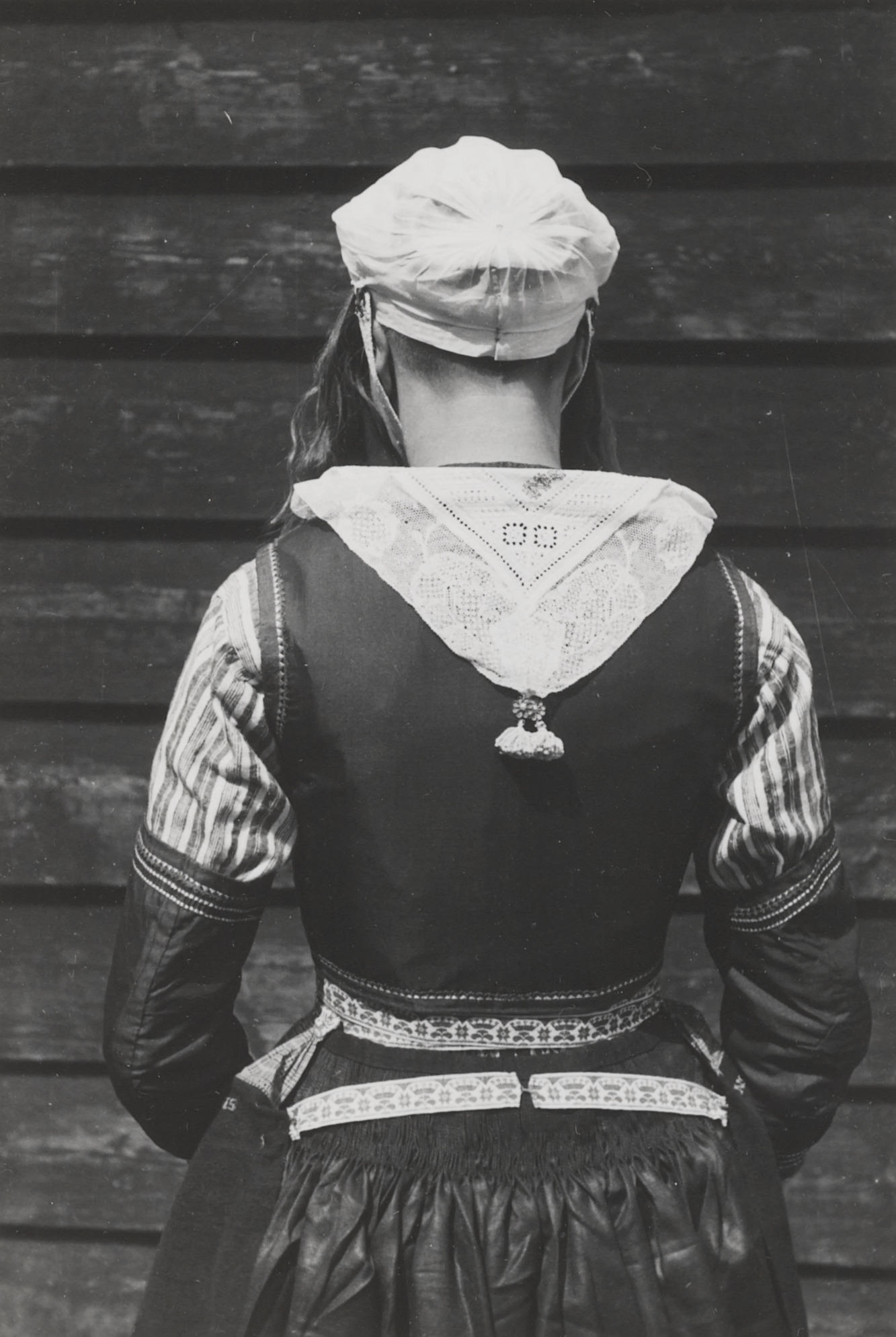 Lobberig Teerhuis in Marker streekdracht. Ze draagt kleding voor de Eerste Pinksterdag.