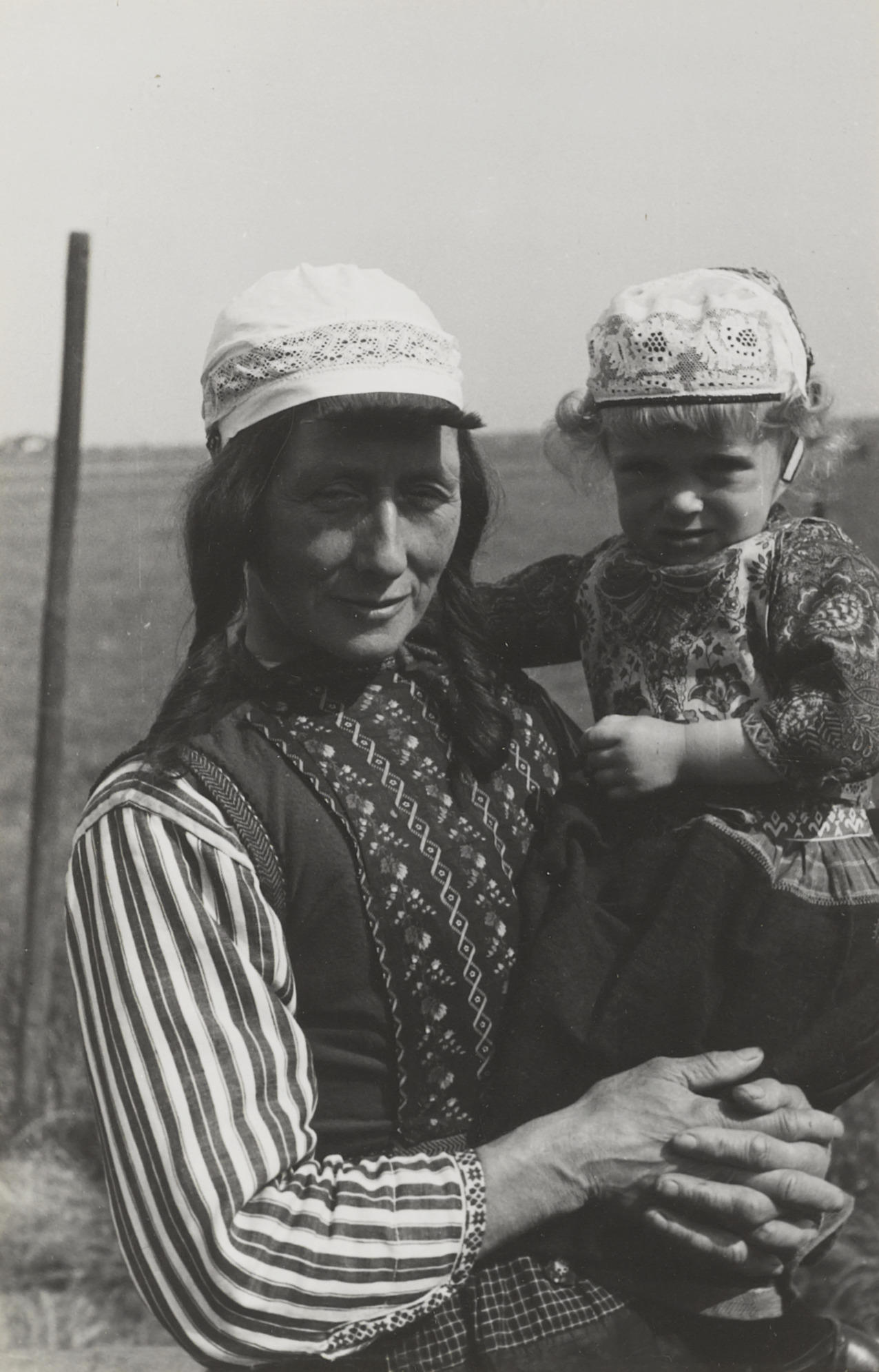 Grootmoeder en kleindochter in Marker dracht, 1943 (zwart-wit foto)