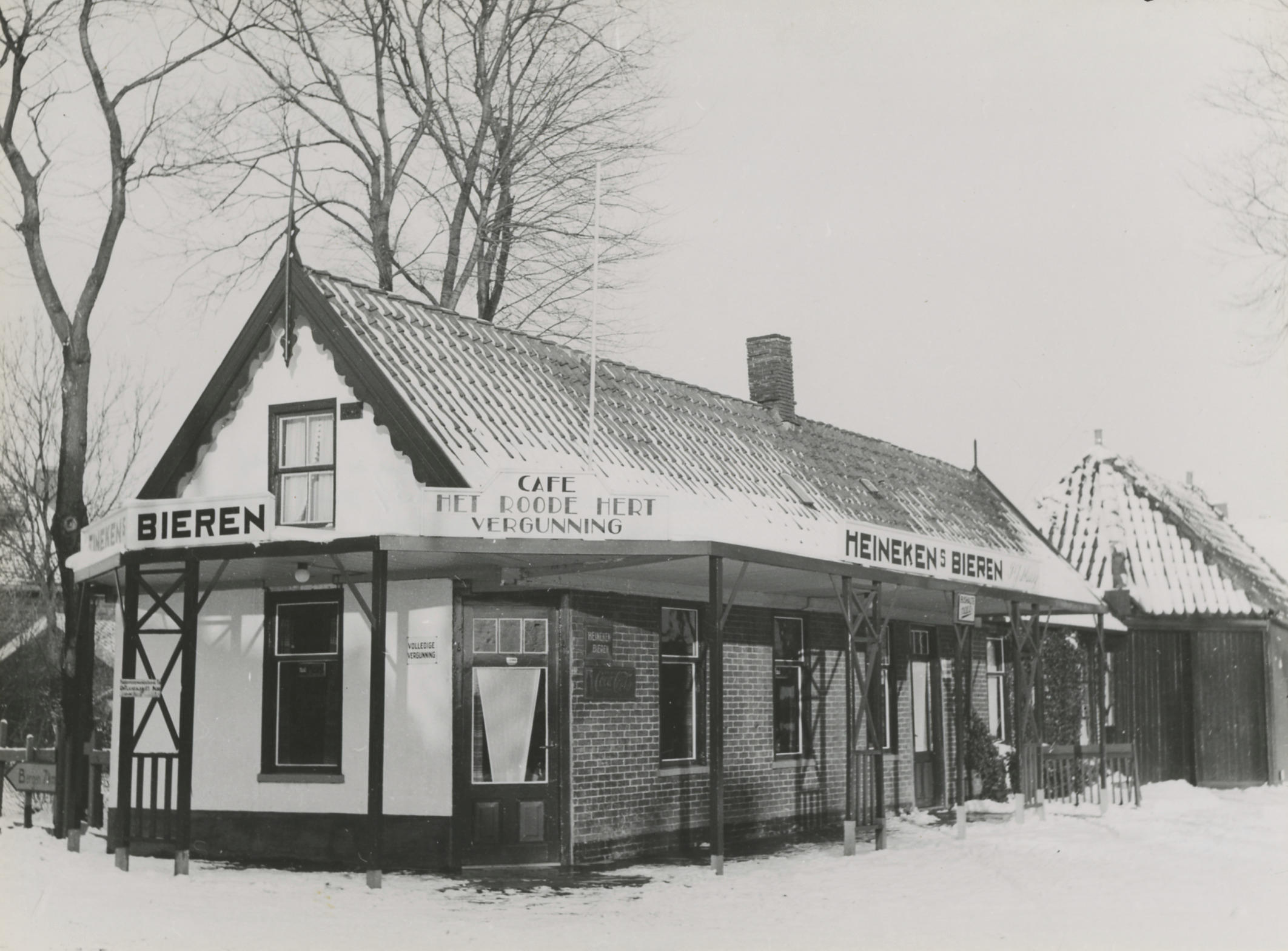 Café 'Het Roode Hert', Egmond aan den Hoef, 1943 (zwart-wit foto)
