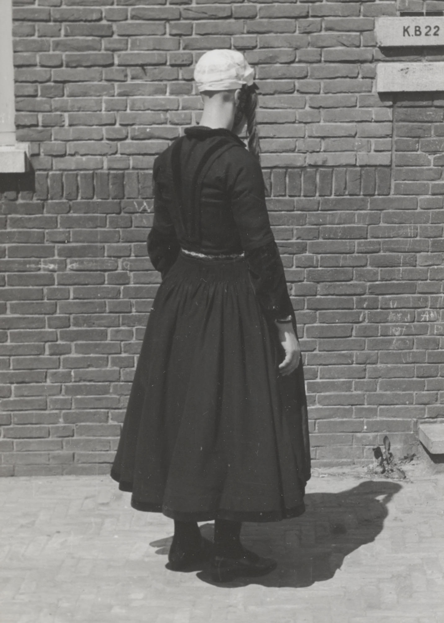 Neeltje Zondervan in het trouwpak, Marken, 1943 (zwart-wit foto)