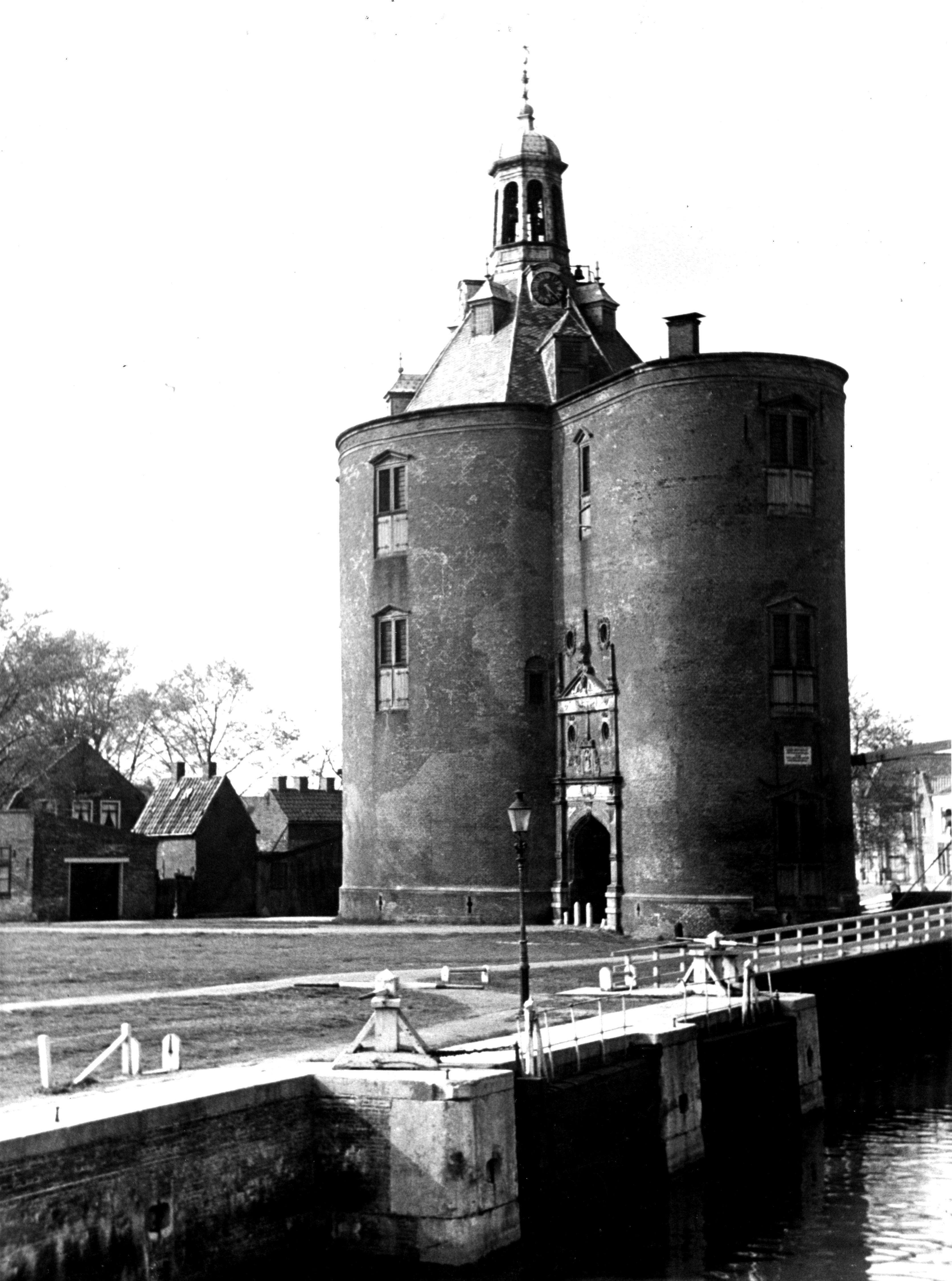 Stadspoort Drommedaris, Enkhuizen, 1942 (zwart-wit foto)