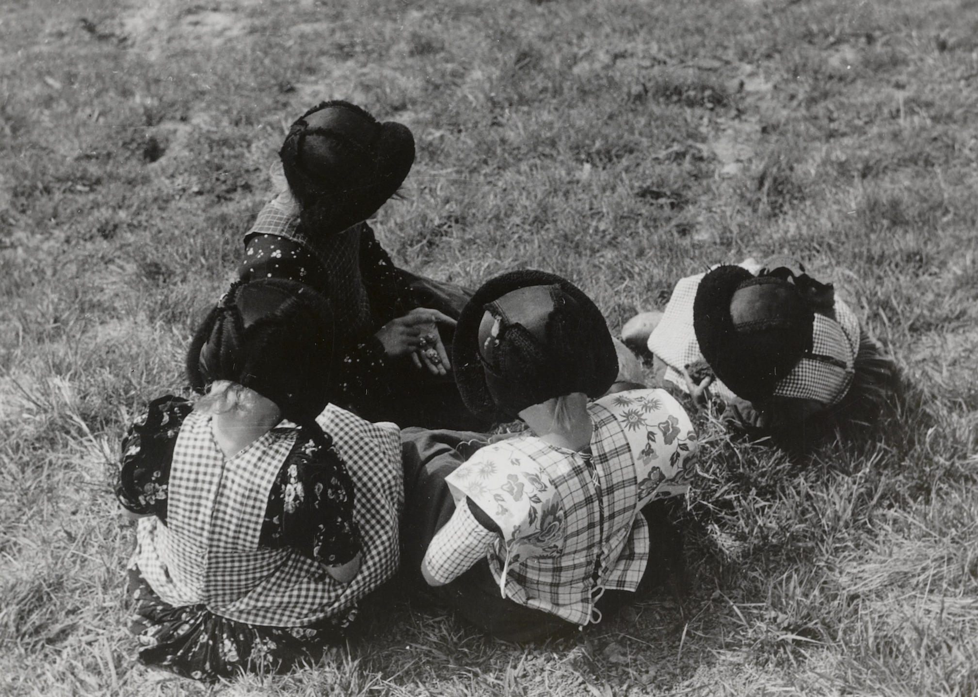 Meisjes in streekdracht uit Bunschoten-Spakenburg, 1942 (zwart-wit foto)