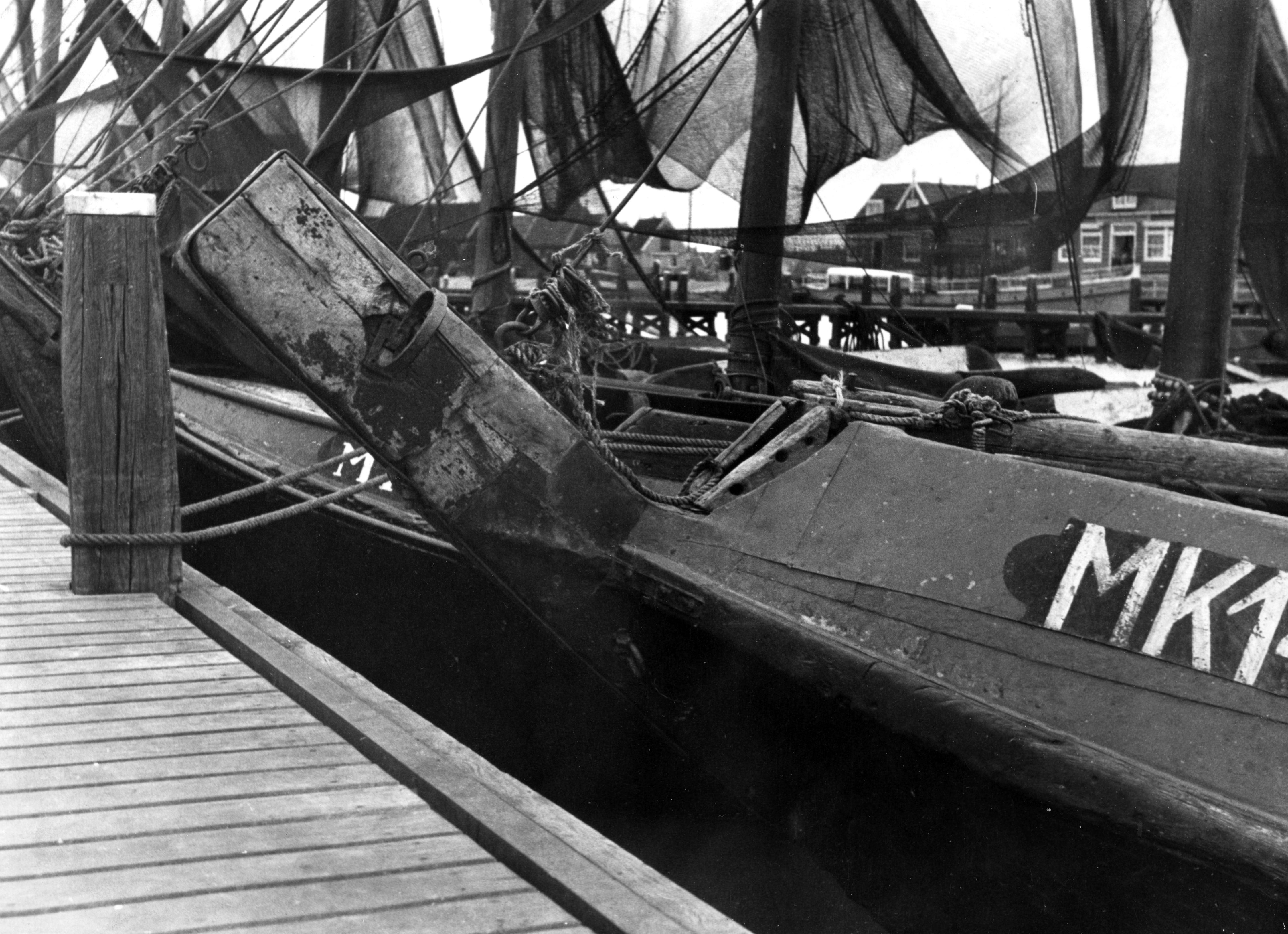 Voorsteven van bons MK 143, Marken, 1943 (zwart-wit foto)