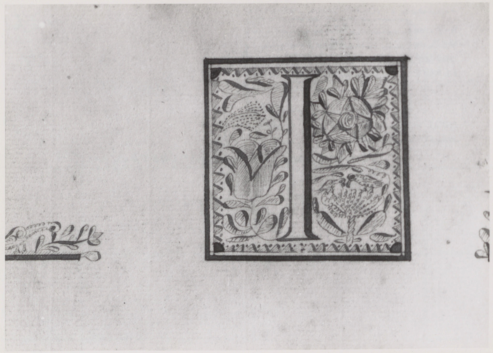 Initiaal 'I' op een aquarel met voorstellingen uit de walvisvaart, gefotografeerd op Marken.