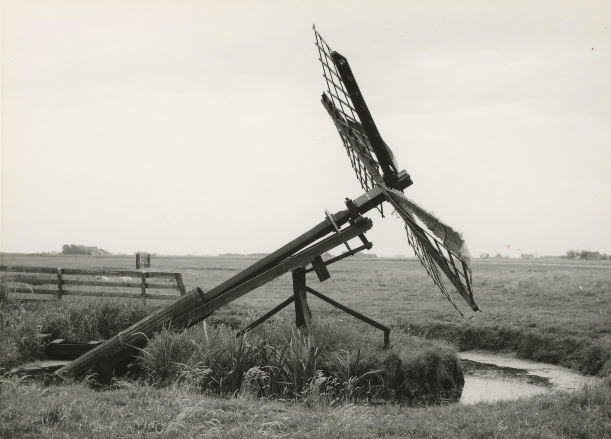 Tjasker in het Heidenschap bij Workum, 1965 (zwart-wit foto)