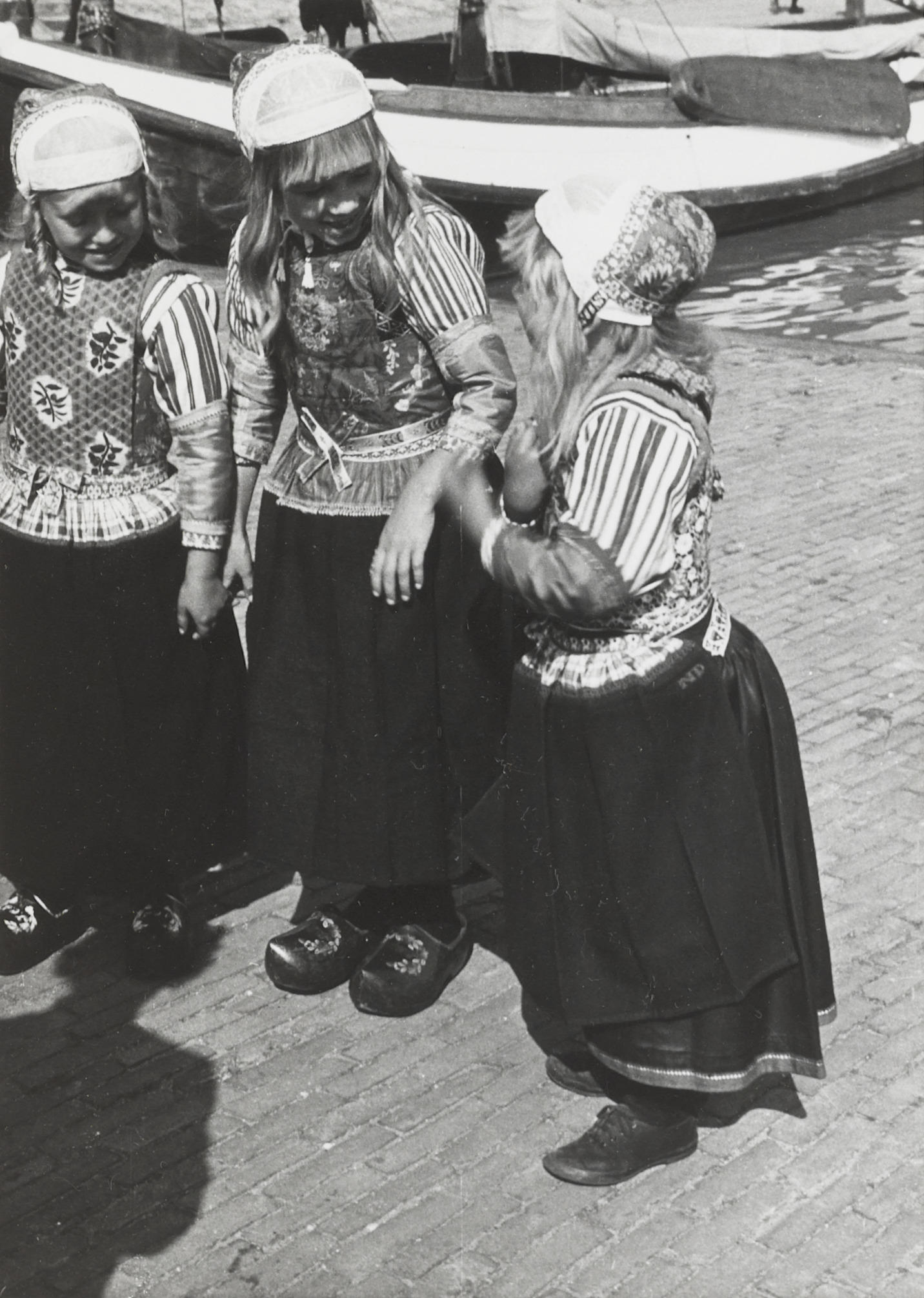 Meisjes in de streekdracht van Marken, 1920–1930 (zwart-wit foto)