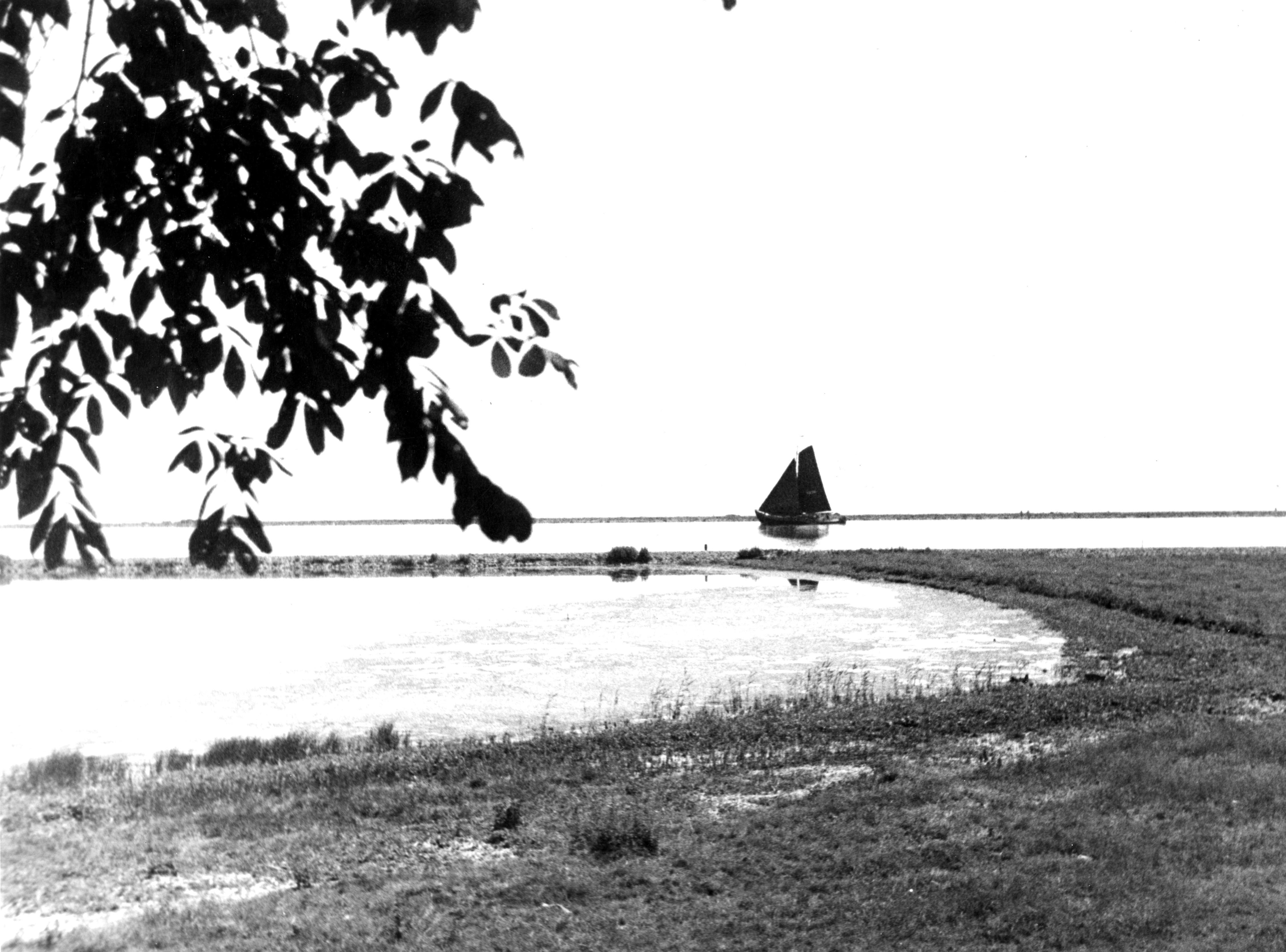 Uitzicht over het IJsselmeer, Enkhuizen, 1942 (zwart-wit foto)