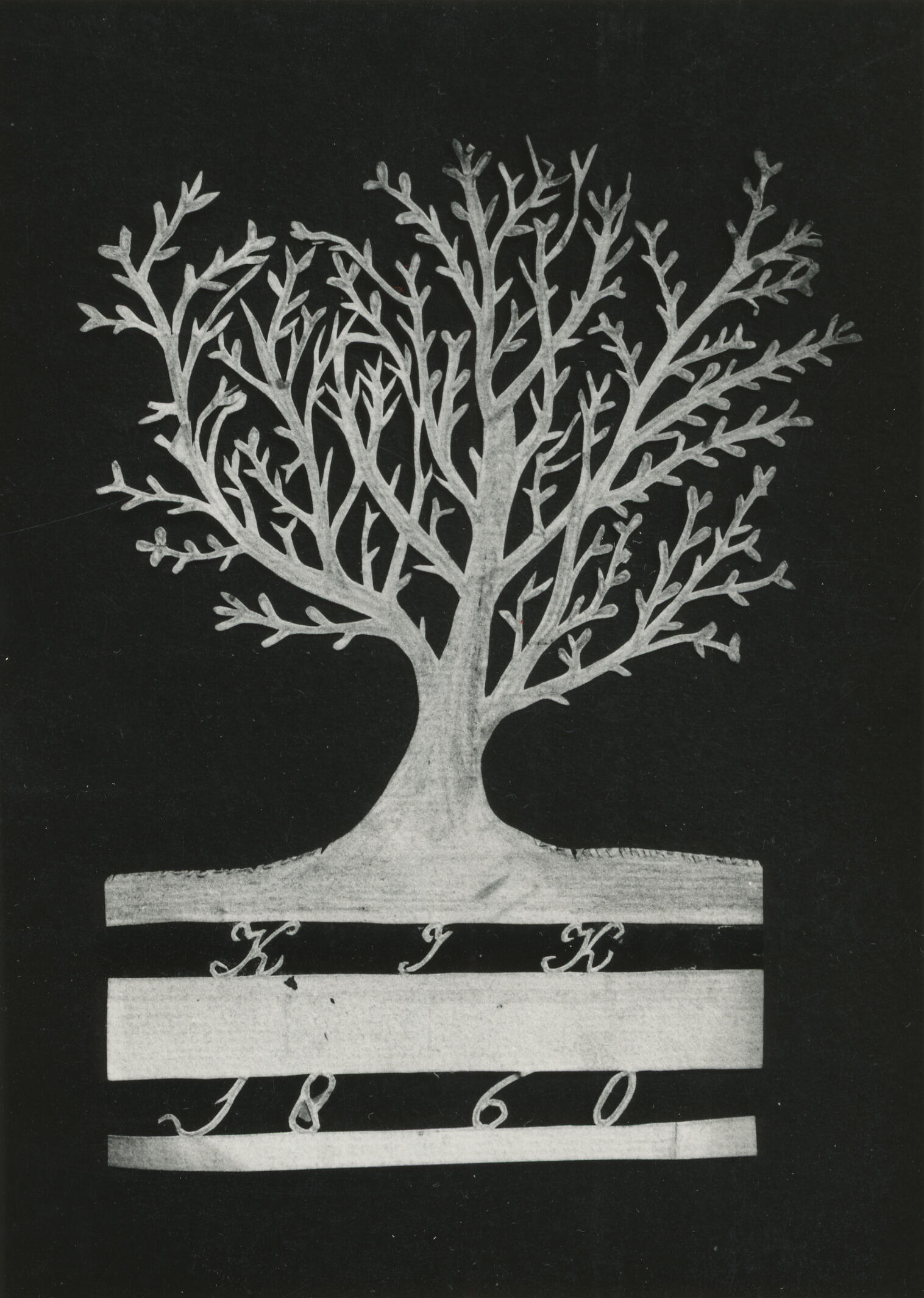 Knipprent van een boom of plant, geknipt door Klaas Ide Koffeman in 1860. De prent is eigendom van familie Van Veen op Urk.