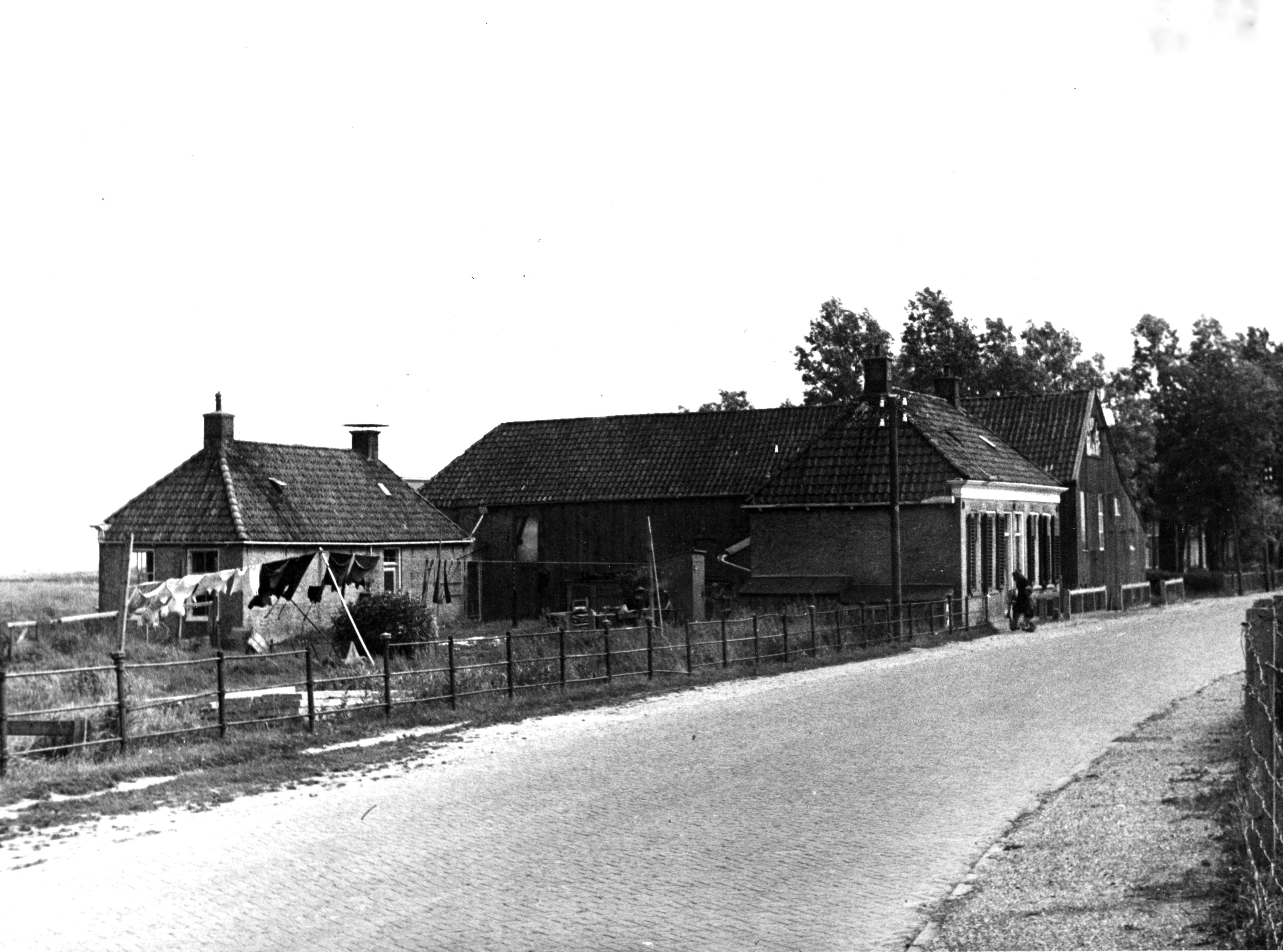 Scheepswerf met woningen, Lemmer, 1942 (zwart-wit foto)