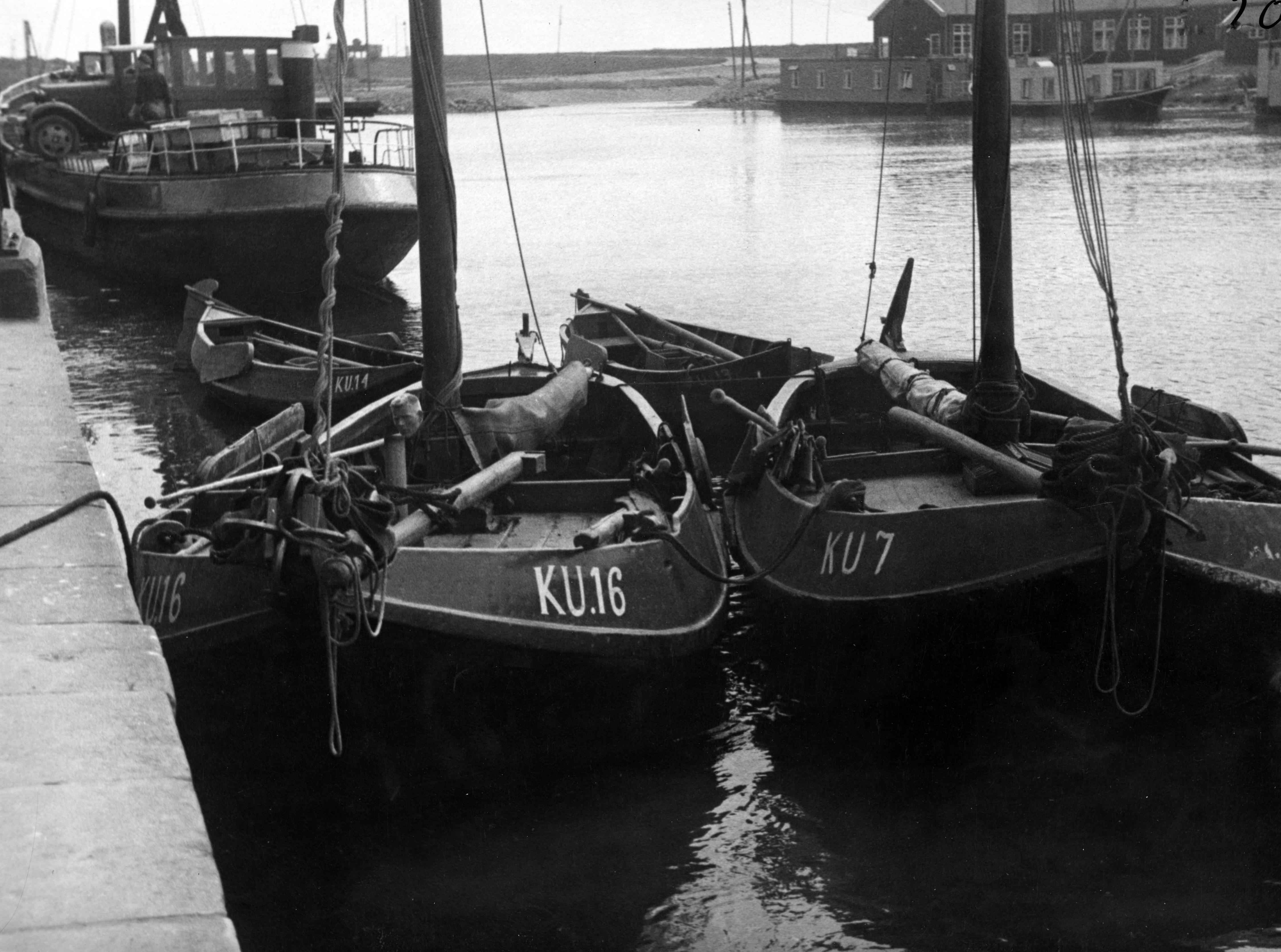 Bonzen in de haven van Lemmer, 1942 (zwart-wit foto)