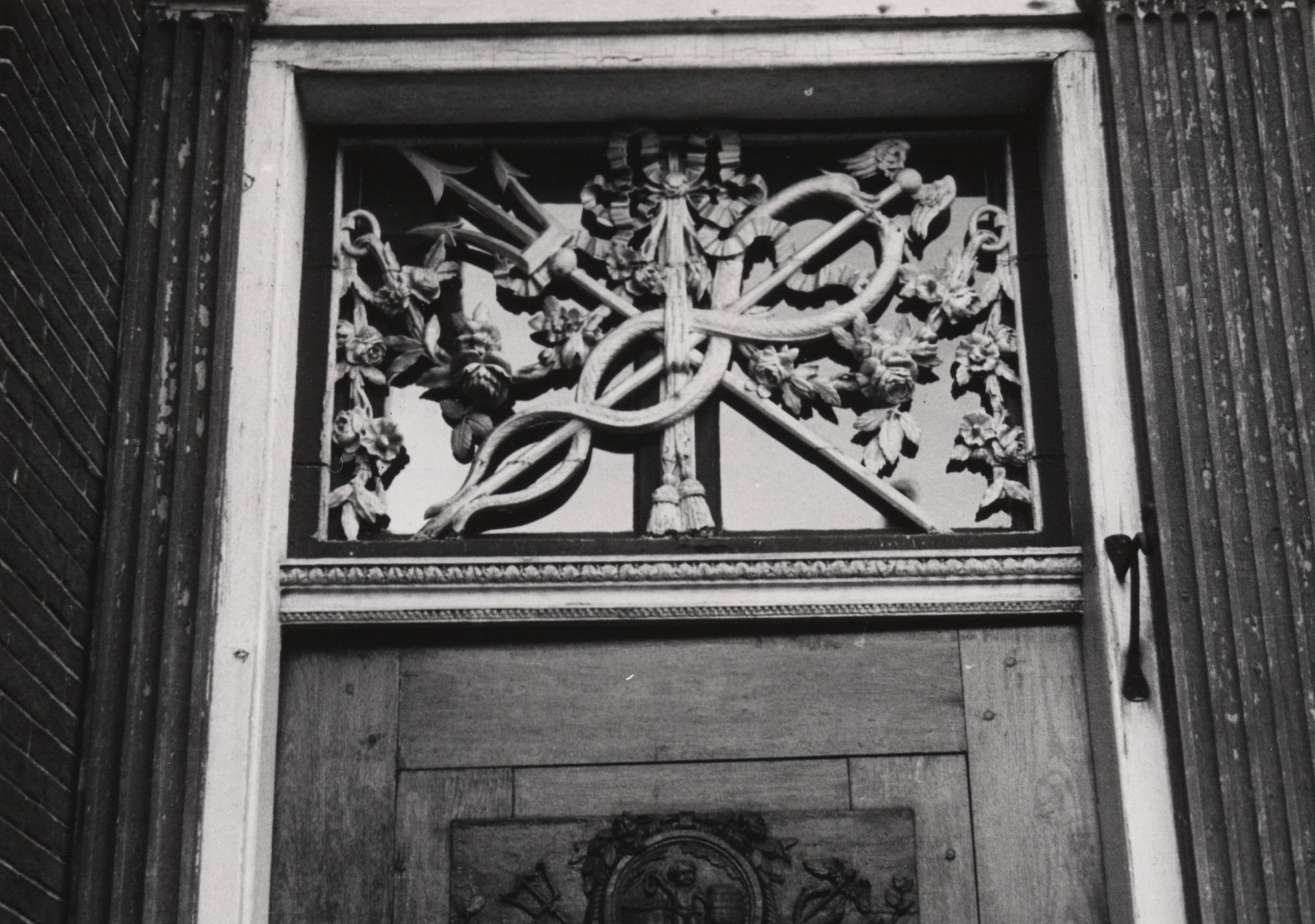 Bovenlicht en deur met bewerkt paneel in koopmanshuis Het Noorderhuis aan de Lagedijk 240 in Zaandijk. Het bovenlicht werd in 1914 bij een verbouwing aangebracht. Het was afkomstig van een gesloopte directeurswoning van de firma Koning & Boeke. In 1970 werd dit pand overgebracht naar de Kalverringdijk op de Zaanse Schans.
