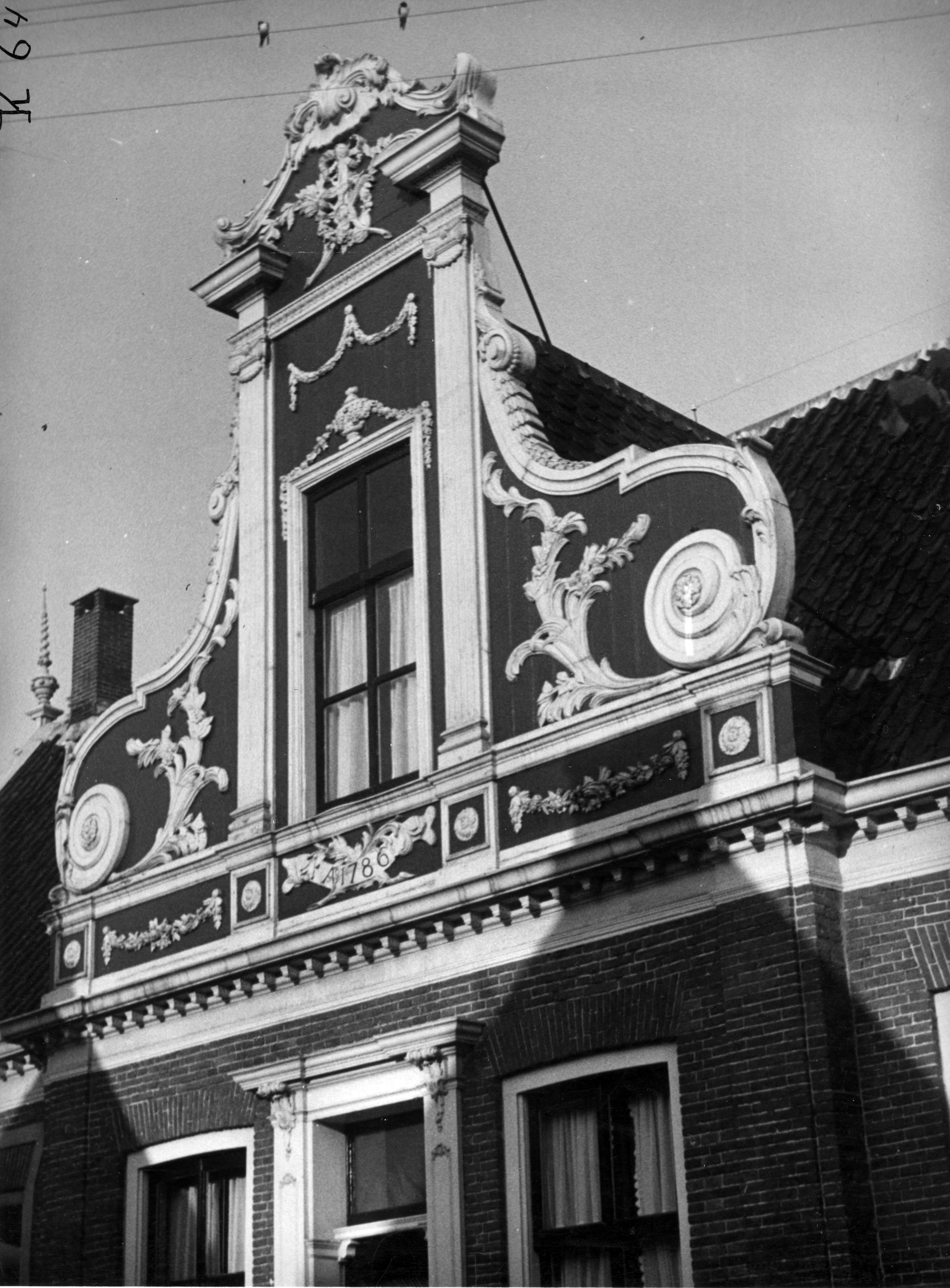 Topgevel van een koopmanswoning, Zaandijk, 1942 (zwart-wit foto)