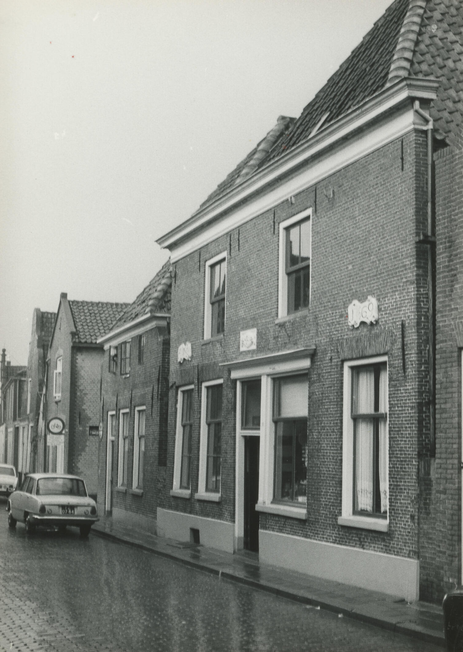 Gevel van bakkerij Van Doesburg aan de Kerkstraat 22 in Vollenhove. De voorgevel dateert uit het laatste kwart van de negentiende eeuw. In de voorgevel zijn drie oudere gevelstenen hergebruikt. Op de linker staat ANNO en op de rechter het jaartal 1669. Op de middelste staat een zogenoemde duivekater, met daarop drie hakenkruizen. Bakker H.J. ...
