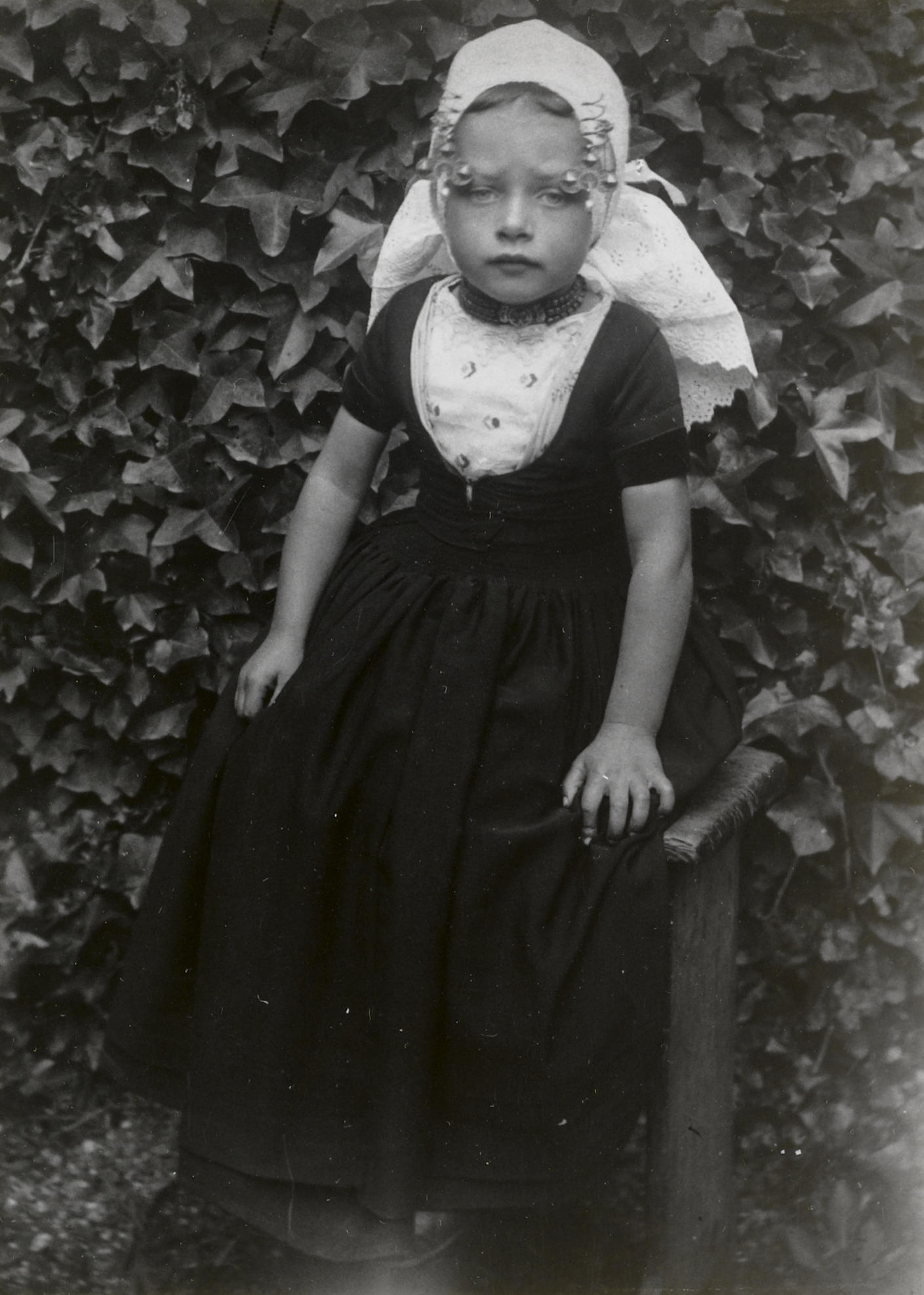 Meisje in Walcherse streekdracht, 1913–1916 (zwart-wit foto)