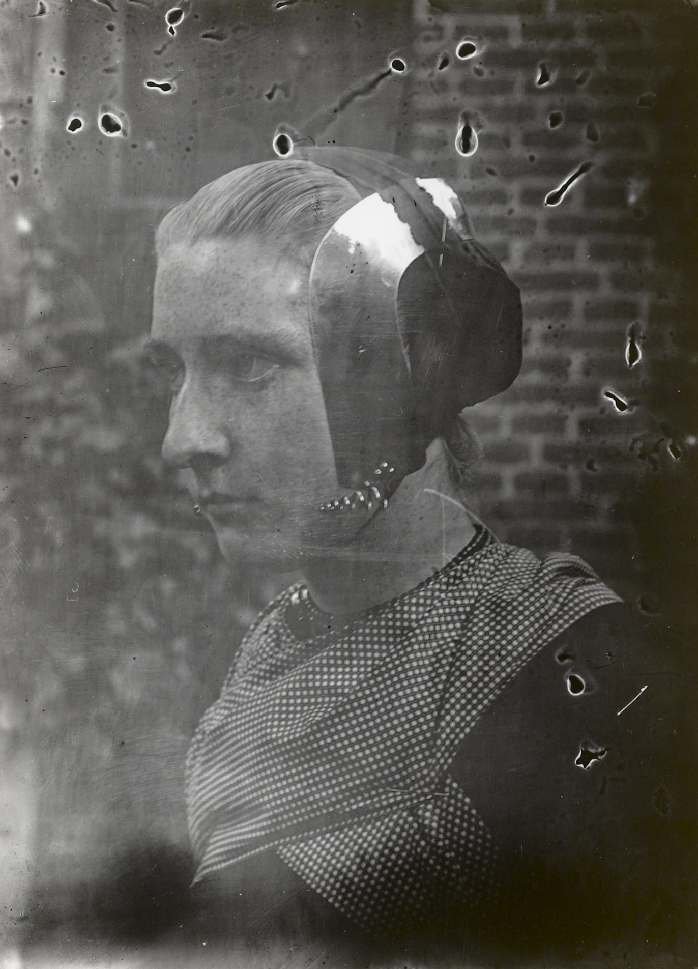 Vrouw uit Oldebroek in Veluwse streekdracht, circa 1915 (zwart-wit foto)