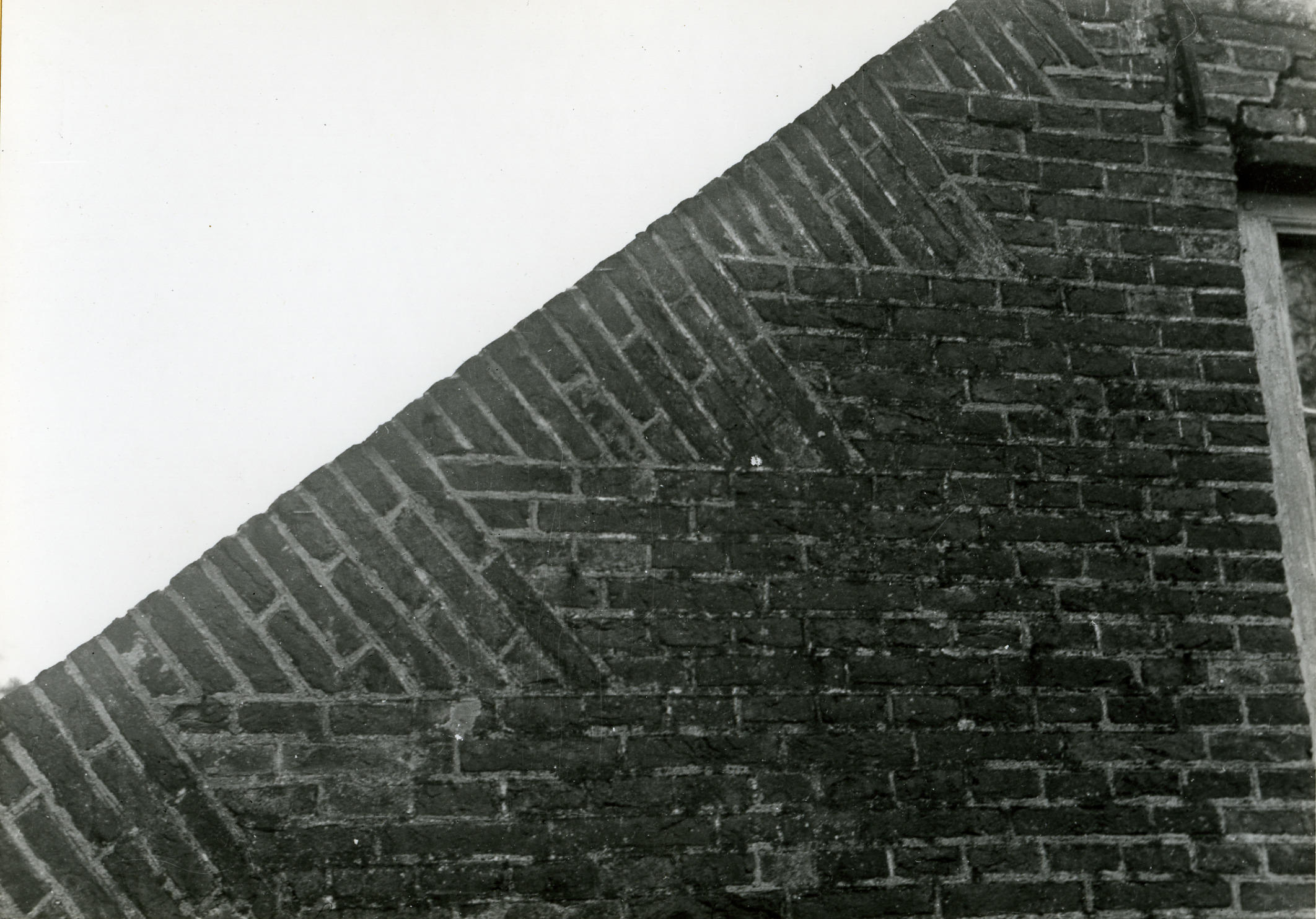 Detailopname van het metselwerk in de voorgevel van boerderij 'De Caterstee' in Kadoelen, in het Ambt van Vollenhove (Overijssel). De Caterstee werd gebouwd omstreeks 1800. Deze boerderij werd in 1942 verkocht aan het Nederlands Openluchtmuseum. In oktober 1942 werd met de afbraak begonnen en in 1946 was de opbouw in Arnhem voltooid. De naam Caterstee ...