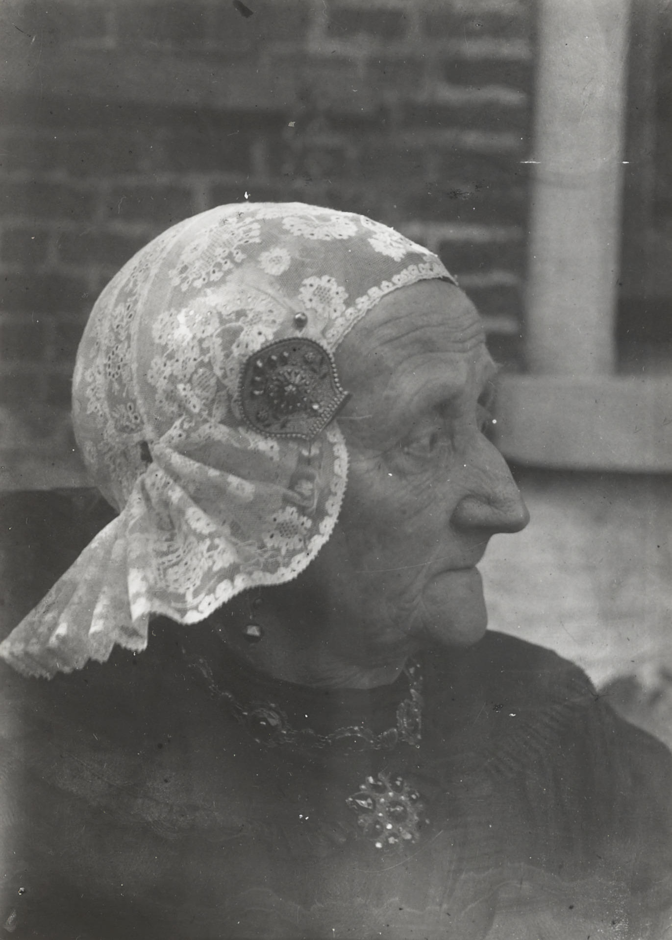 Vrouw in Friese streekdracht, 1913–1916 (zwart-wit foto)