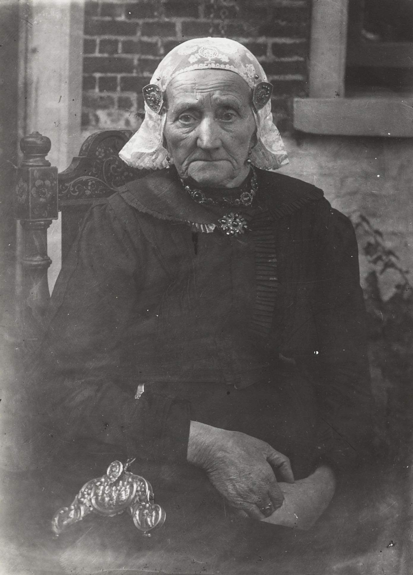 Vrouw in Friese streekdracht, 1913–1916 (zwart-wit foto)