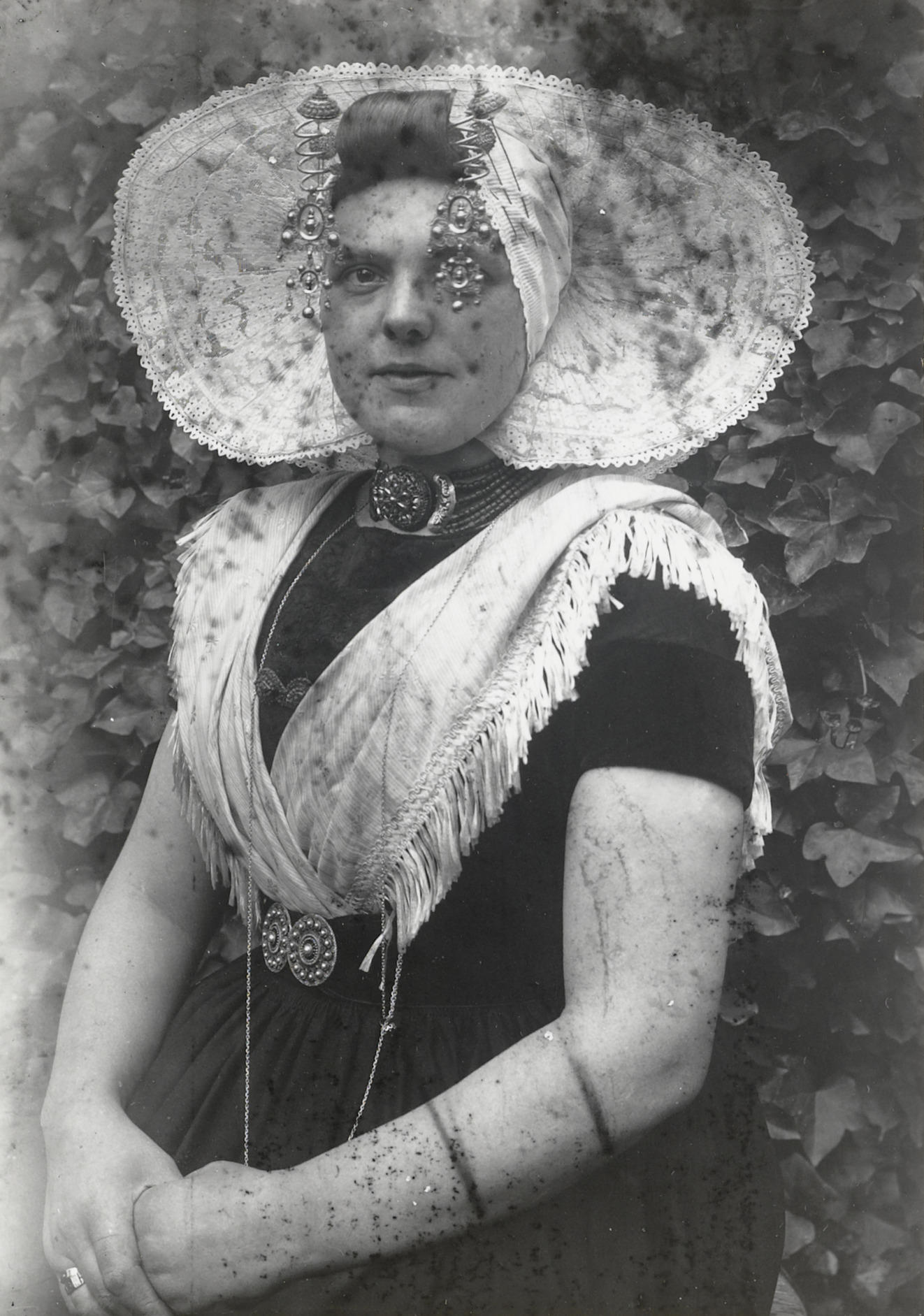 Johanna Bliek in de dracht van Nieuw- en Sint Joosland, 1913–1916 (zwart-wit foto)