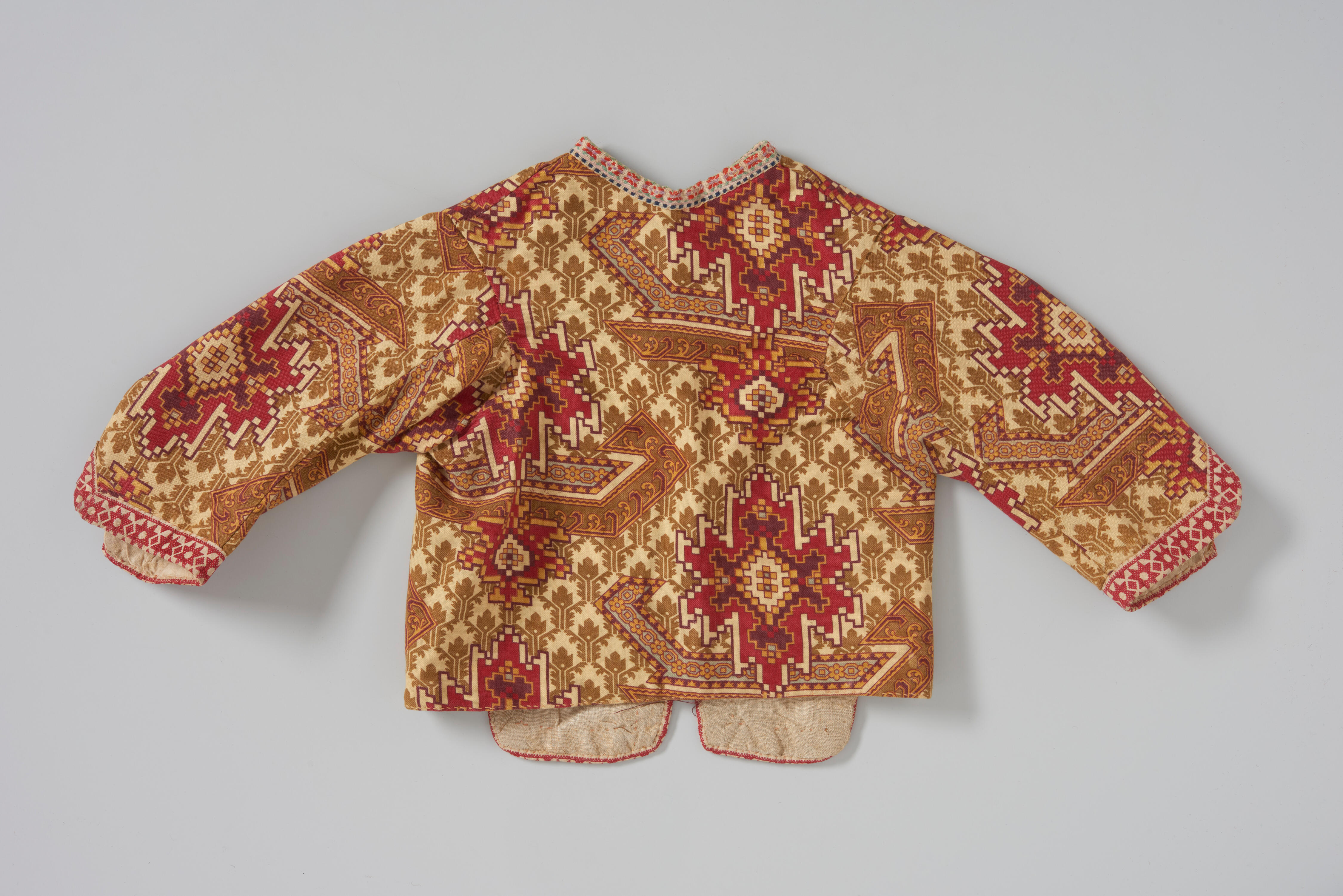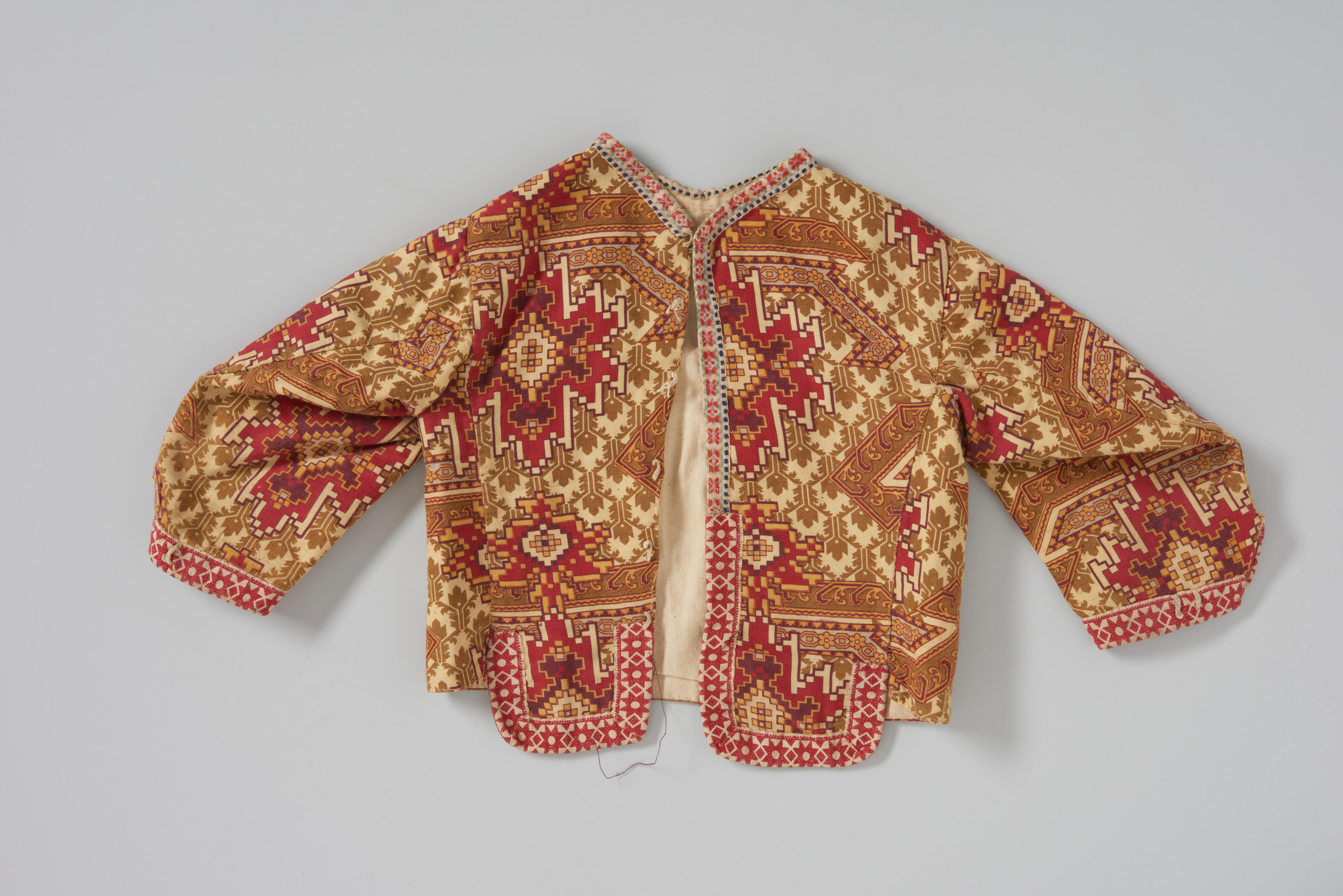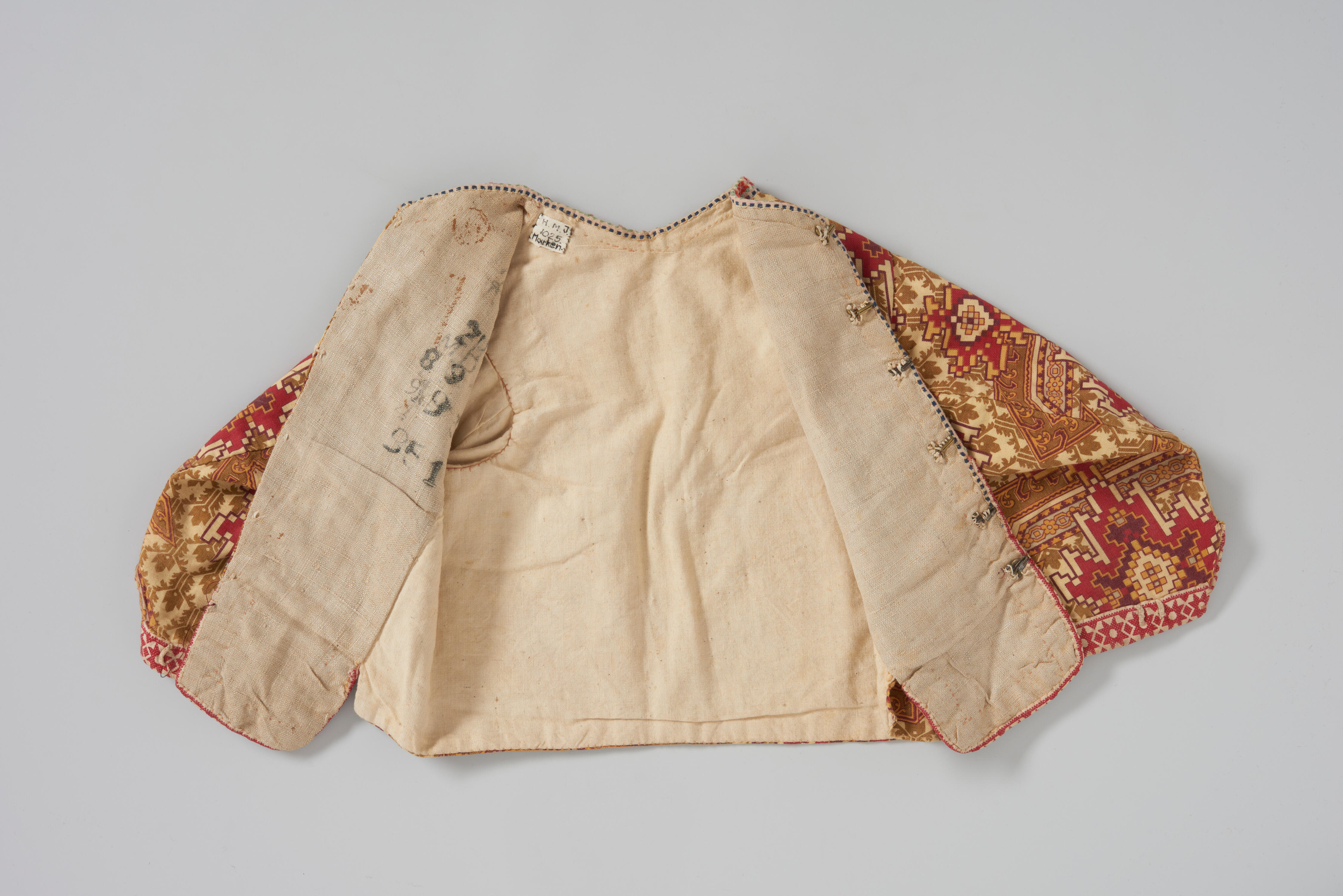 Jak van bedrukte katoen, een zogenoemde 'borsik', gedragen door een jongen in streekdracht van het eiland Marken bij de zomerdracht. De borsik sluit aan de achterzijde met haken en ogen. Een borsik voor een jongen onderscheidt zich van een borsik voor een meisje door de twee pandjes, die aan de achterzijde afhangen. Bij een meisje ...