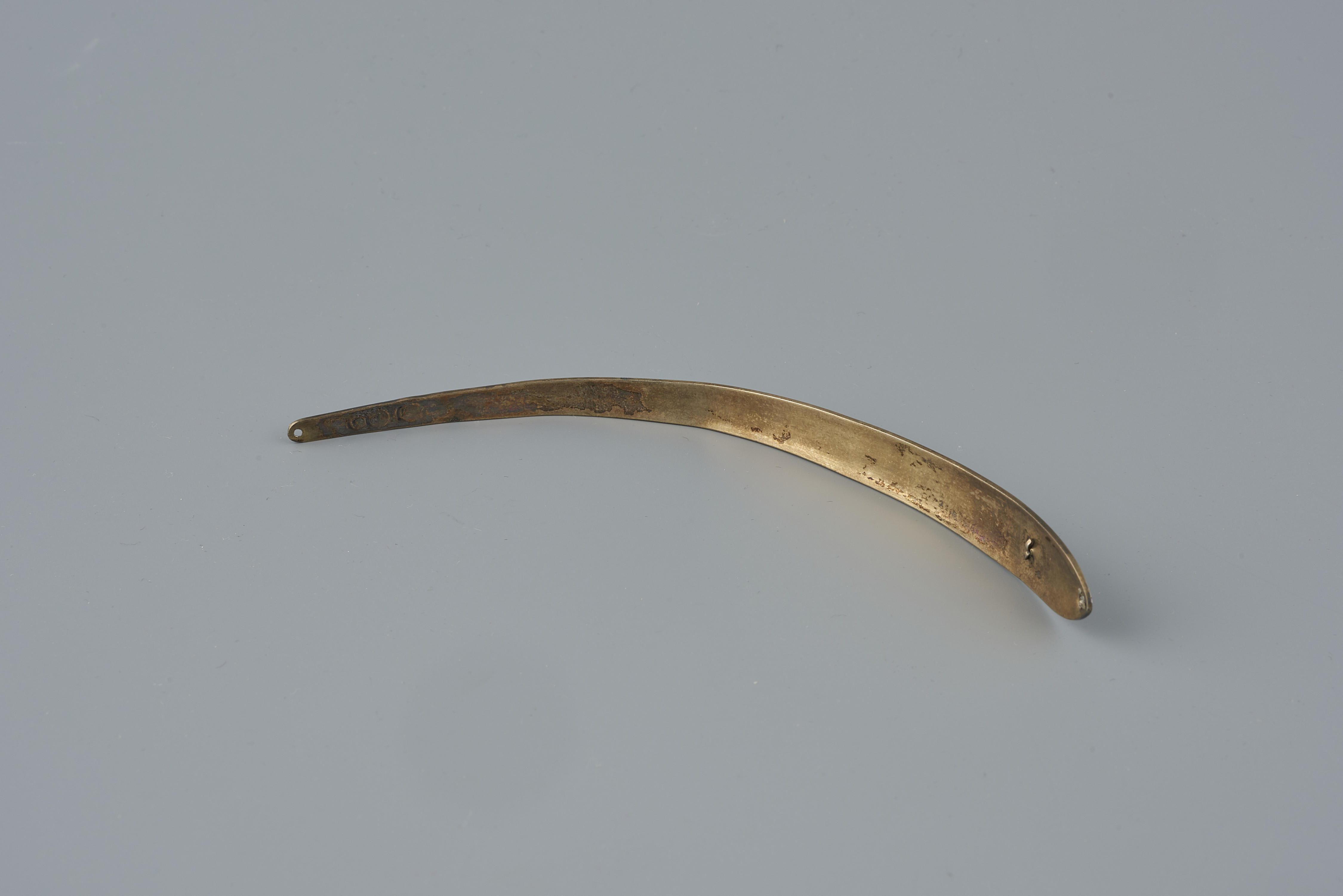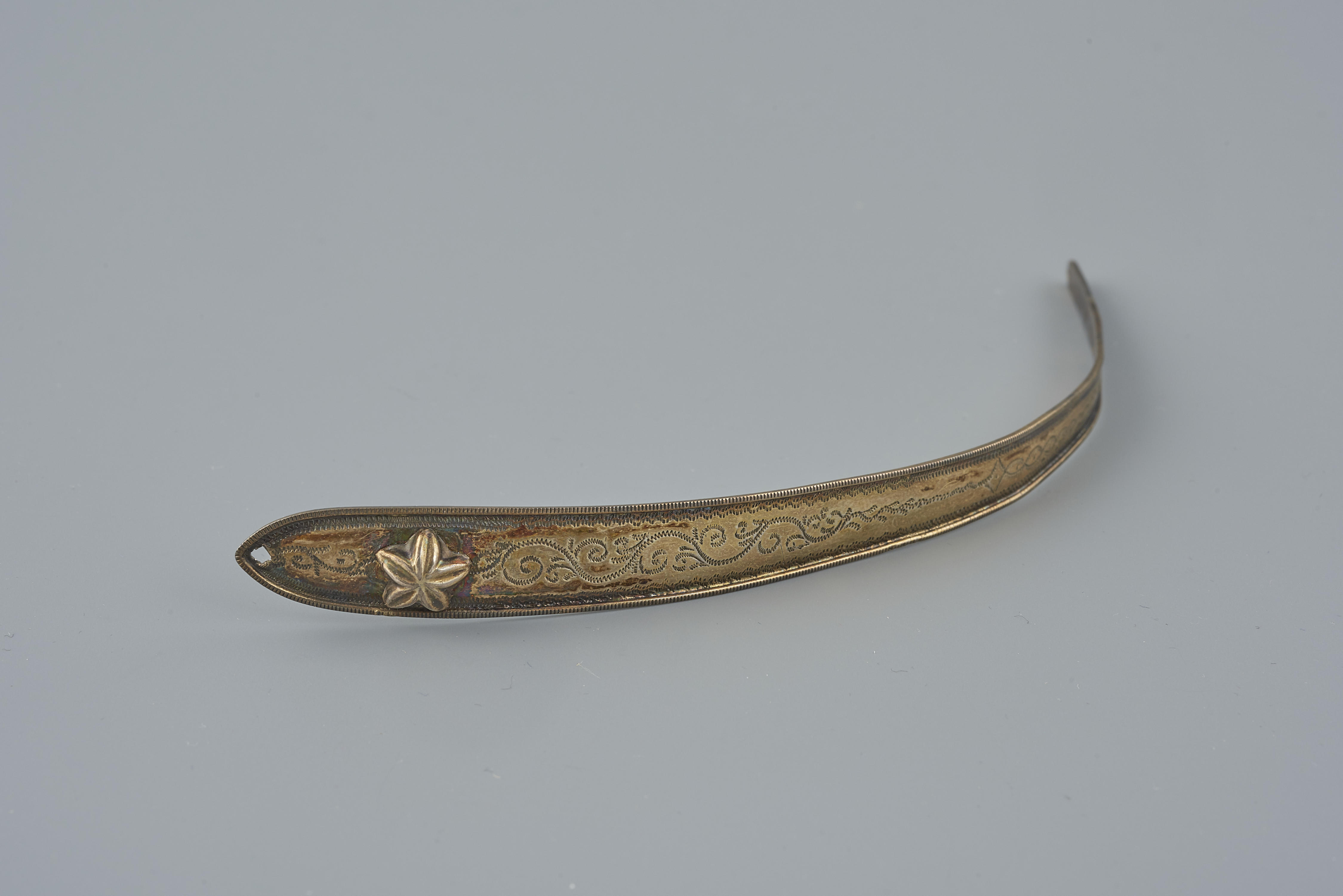 Een vergulde zilveren zijnaald. De naald is oorspronkelijk gedragen als onderdeel van een paar door een vrouw in streekdracht uit de provincie Noord-Holland. Deze zijnaald is in 1884 vervaardigd door Pieter Salm in Hoorn.