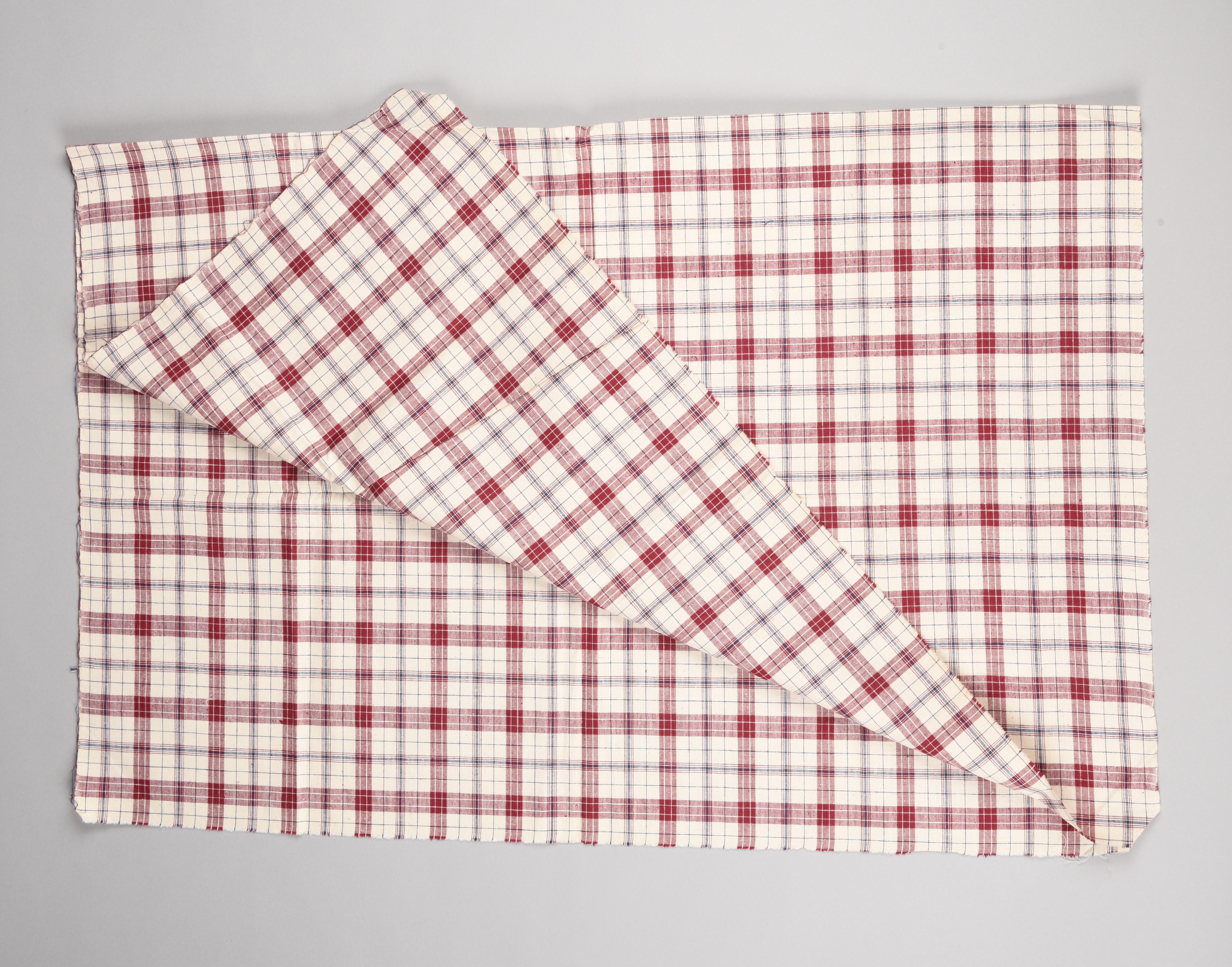 Een stuk geruite katoen, precies van het formaat om een kinderschort van te maken. De weefbreedte is 82 centimeter.