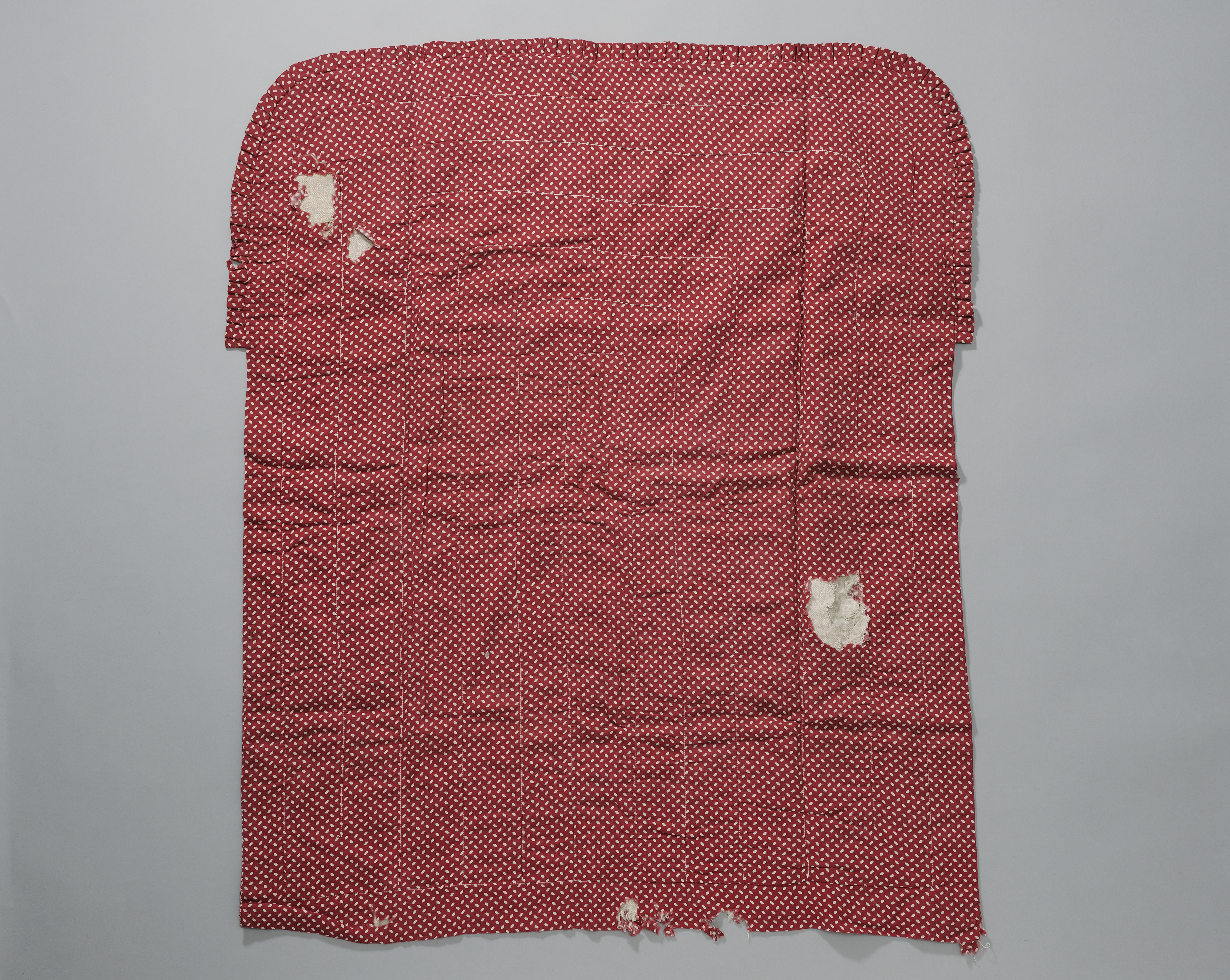 Doorgestikte pakdoek voor een bakerkind. De buitenkant van de doek is van katoen; de binnenkant is van linnen.