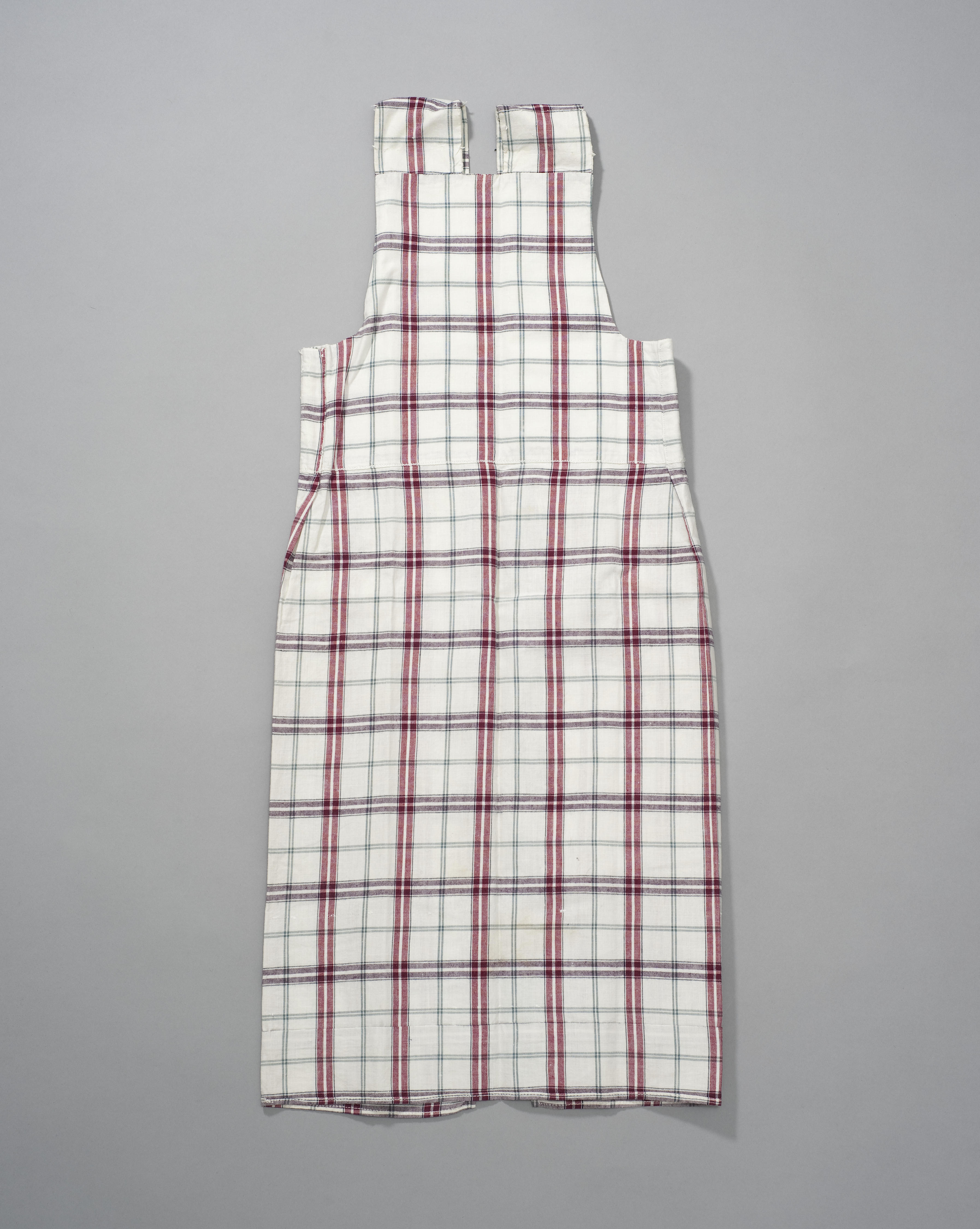 Heel schort van geruite katoen voor een meisje tussen 1 en 5 jaar oud.