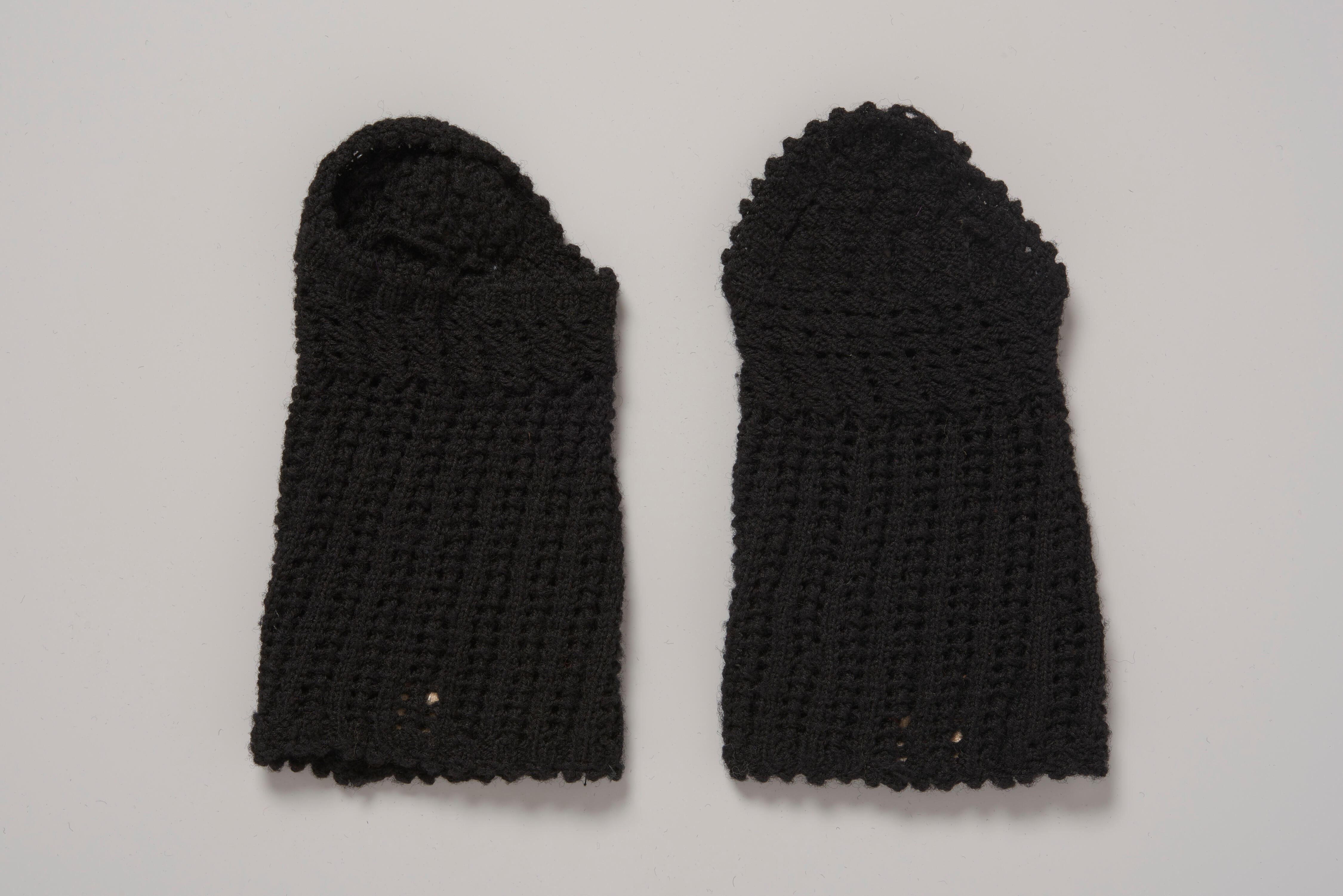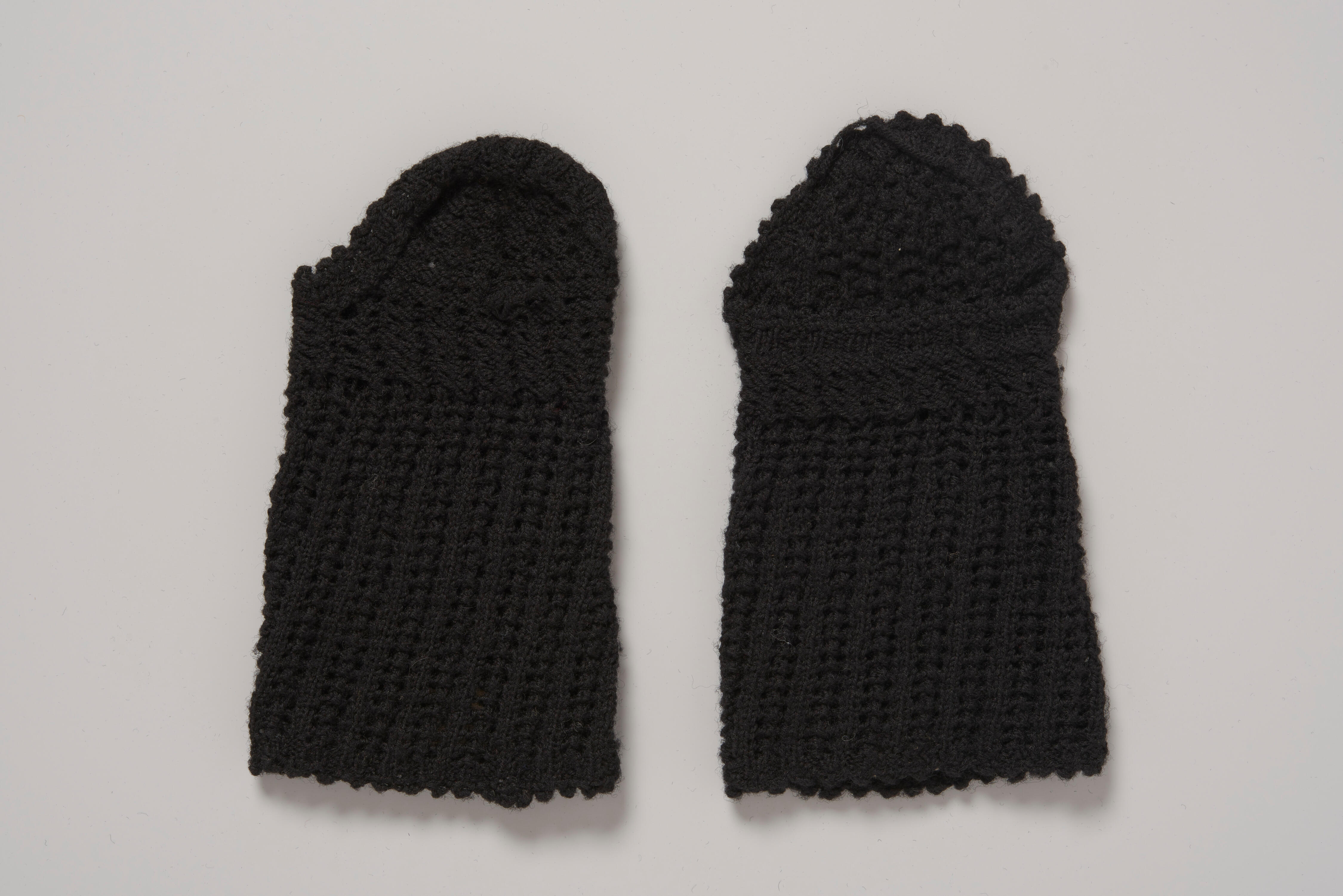 Een paar korte ajourgebreide mitaines van zwarte wol, gedragen door een vrouw in Urker streekdracht bij de zondagse kerkdracht en bij gelegenheidskleding, zoals naar een begrafenis. Deze mitaines worden op Urk 'wintjes' (wantjes) genoemd. Ze worden rond de pols gedragen. Tijdens het gebruik wordt het puntige gedeelte vanaf de hand teruggeslagen op de pols. Hiermee ...