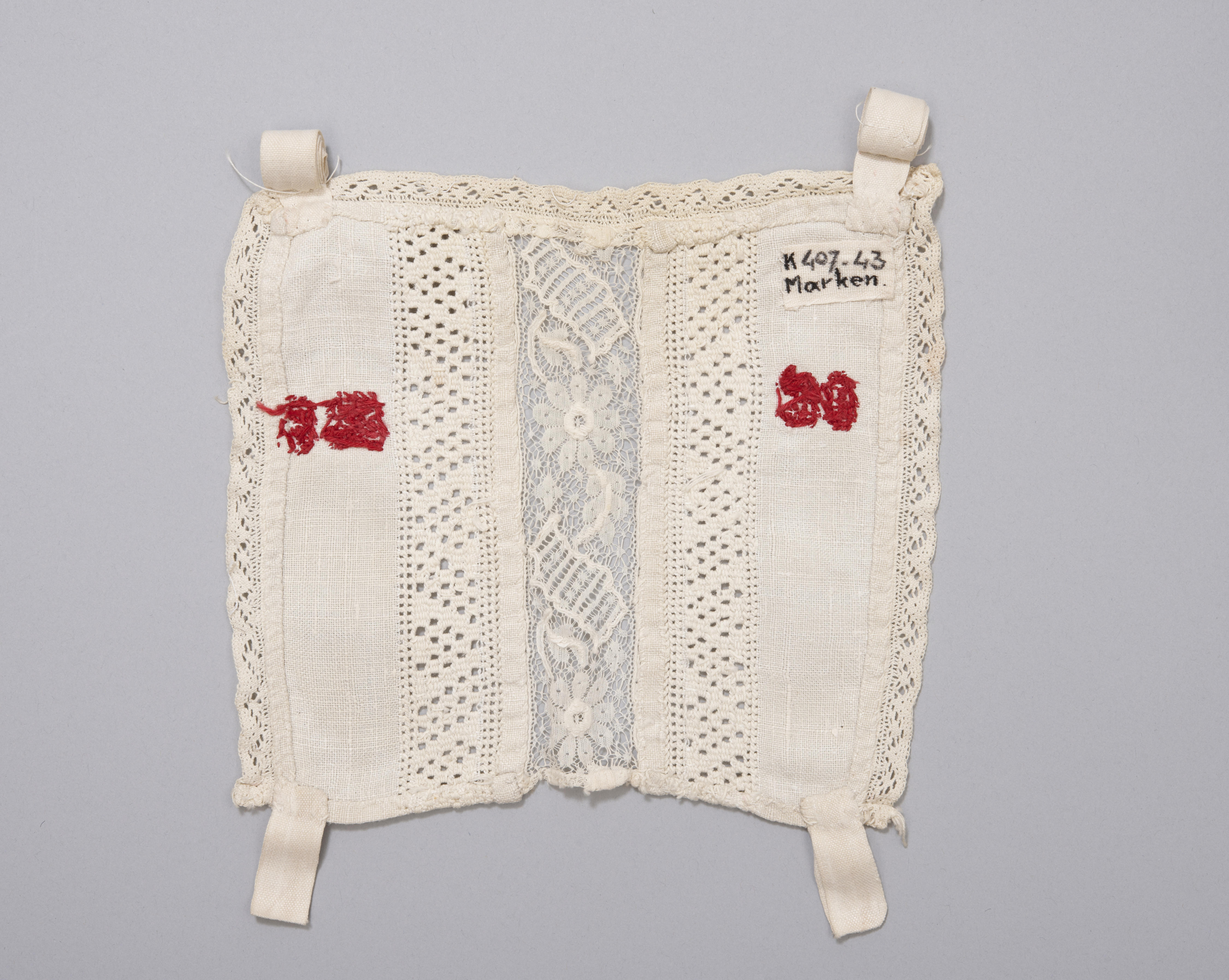 Een pasgeboren baby op Marken kreeg een zogenaamd 'opkledersbauwtje' aan. Dit pronkstukje werd gedragen over het rood baaien borsikkie dat met zijden koor was afgezet. Onder het kanten middenstukje werd een zogenaamde 'blinker', een lapje van rood baai, gedragen. Na ongeveer twee weken werd het opkledersbauwtje verwisseld voor de gewone jongens- of meisjesbauw.