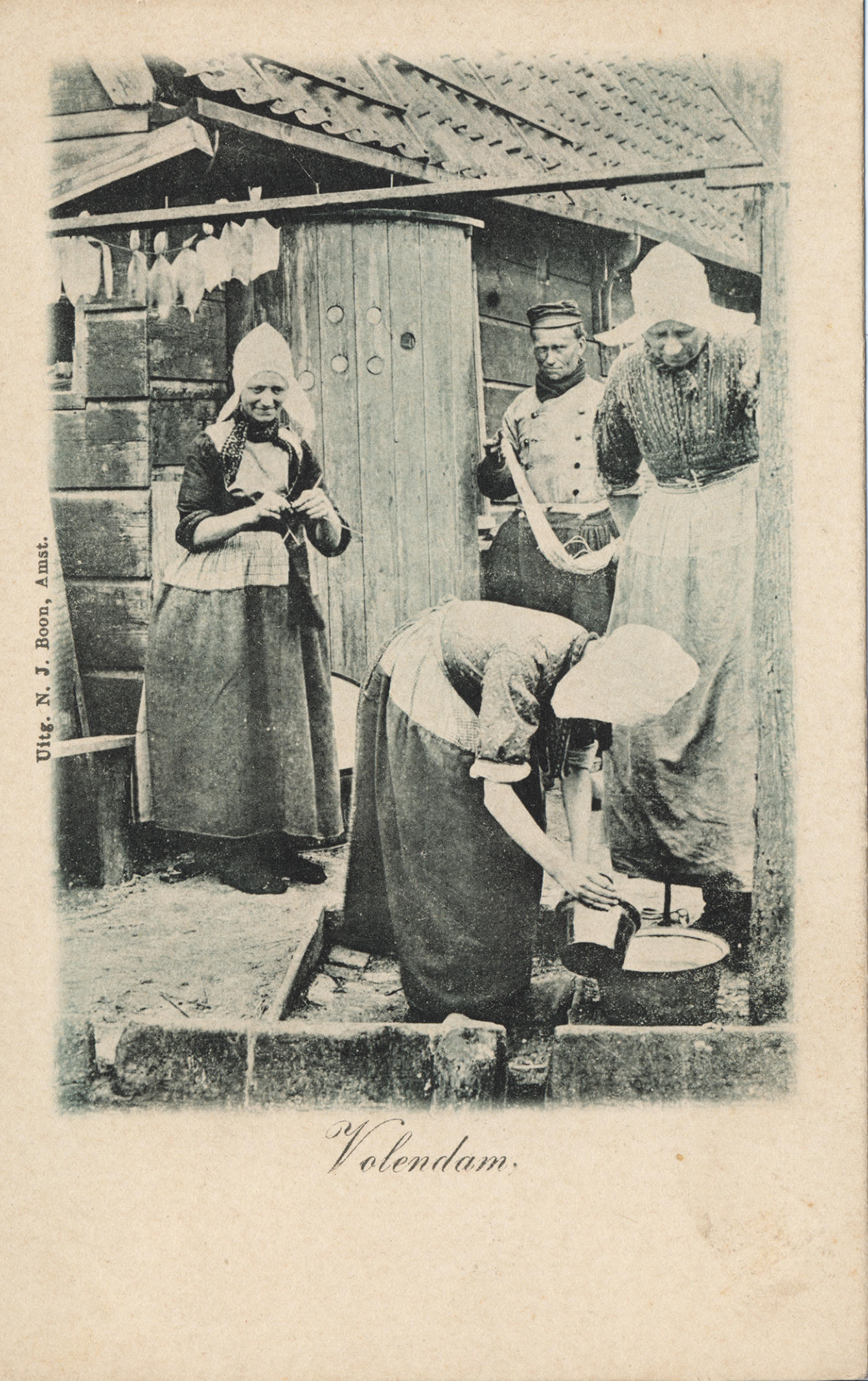 Vrouwen en man in Volendammer dracht, 1886–1905