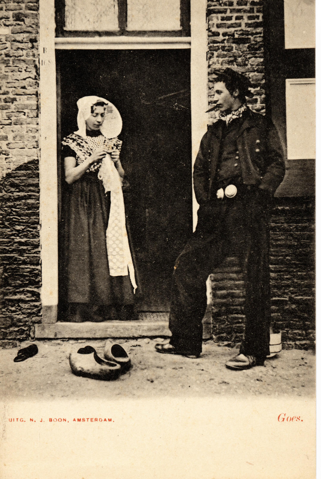 Vrouw en man in protestantse Zuid-Bevelandse dracht, 1886–1905