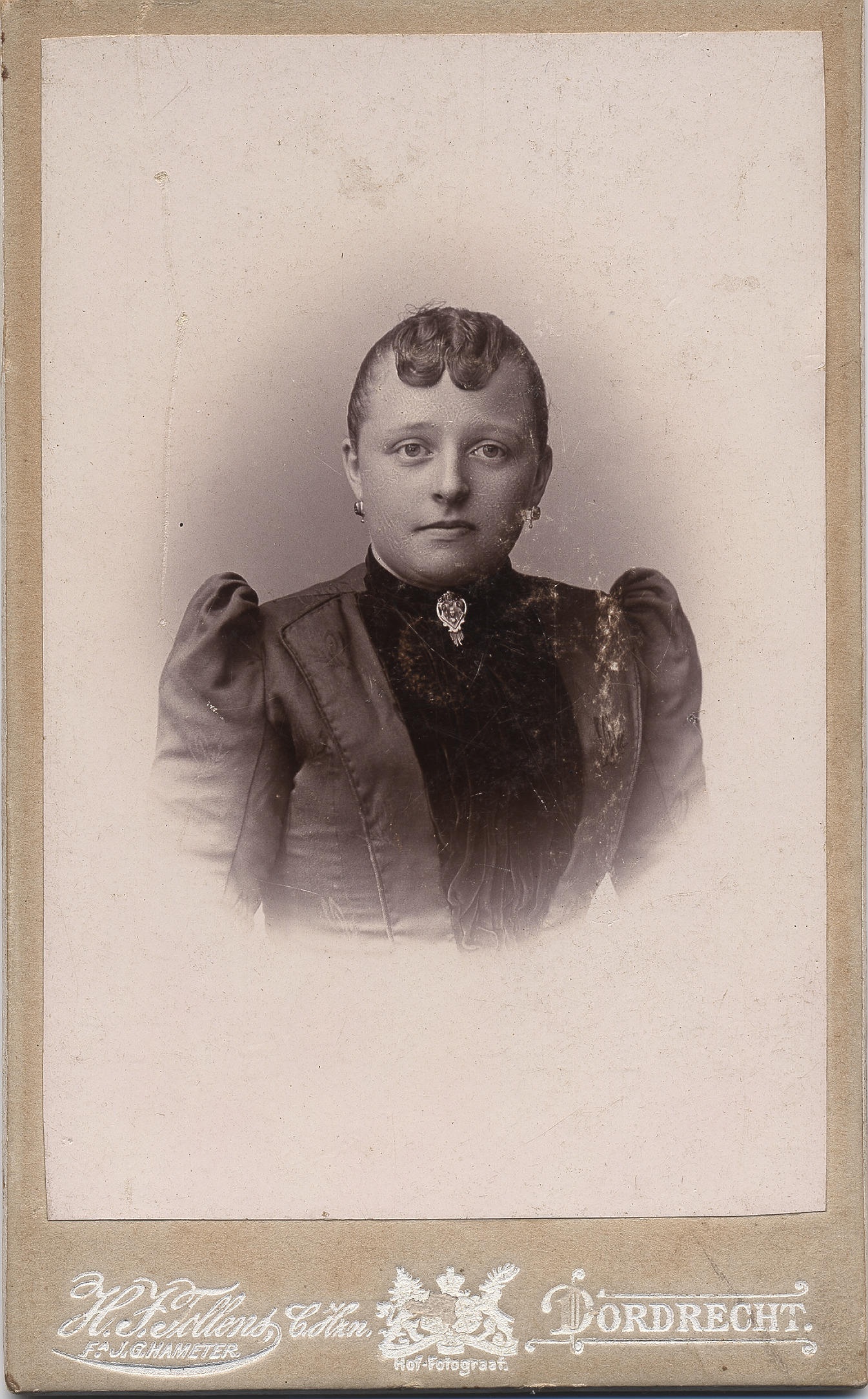 Carte-de-visite van een onbekende vrouw uit Willemstad. Ze is gekleed in algemene modedracht.