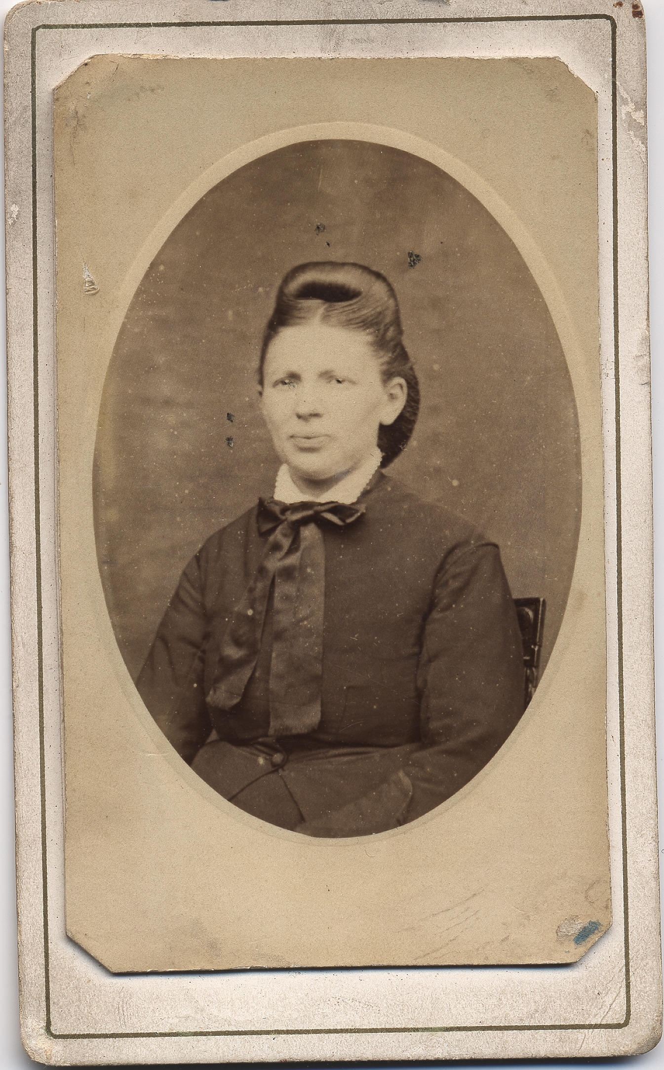 Carte-de-visite van een onbekende vrouw uit Willemstad. Ze is gekleed in algemene modedracht.