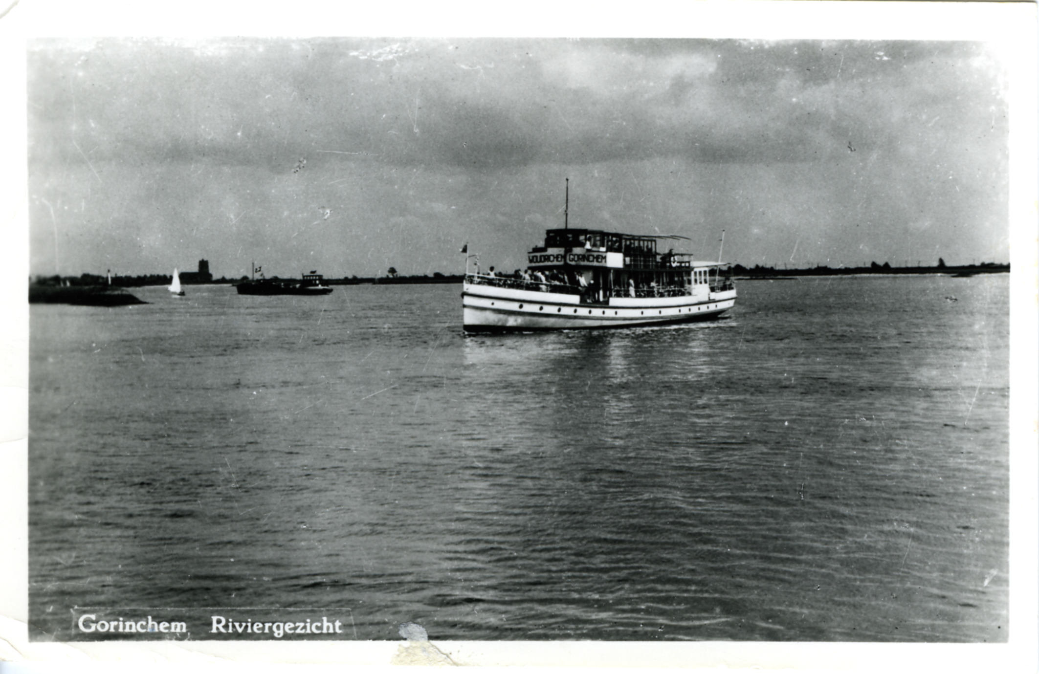 De veerboot Woudrichem-Gorinchem op de rivier bij Gorinchem.